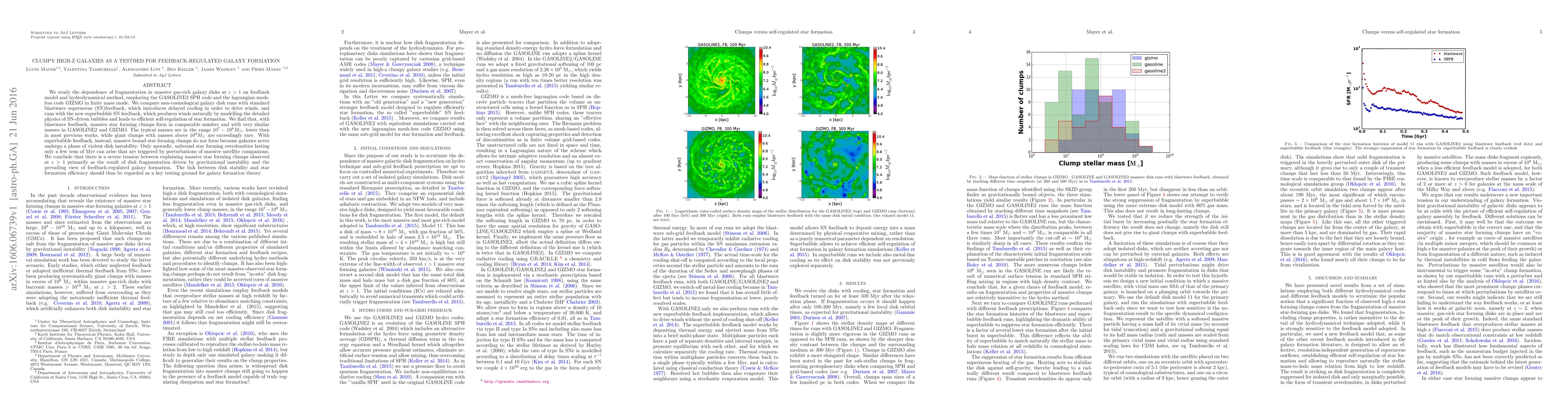We study the dependence of fragmentation in massive gas-rich galaxy disks at $z > 1$ on feedback model and hydrodynamical method, employing the GASOLINE2 SPH code and the lagrangian mesh-less code GIZMO in finite mass mode. We compare non-cosmological galaxy disk runs with standard blastwave supernovae (SN)feedback, which introduces delayed cooling in order to drive winds, and runs with the new superbubble SN feedback, which produces winds naturally by modelling the detailed physics of SN-driven bubbles and leads to efficient self-regulation of star formation. We find that, with blastwave feedback, massive star forming clumps form in comparable number and with very similar masses in GASOLINE2 and GIZMO. The typical masses are in the range $10^7-10^8 M_{\odot}$, lower than in most previous works, while giant clumps with masses above $10^9 M_{\odot}$ are exceedingly rare. With superbubble feedback, instead, massive bound star forming clumps do not form because galaxies never undergo a phase of violent disk instability. Only sporadic, unbound star forming overdensities lasting only a few tens of Myr can arise that are triggered by perturbations of massive satellite companions. We conclude that there is a severe tension between explaining massive star forming clumps observed at $z > 1$ primarily as the result of disk fragmentation driven by gravitational instability and the prevailing view of feedback-regulated galaxy formation. The link between disk stability and star formation efficiency should thus be regarded as a key testing ground for galaxy formation theory.
