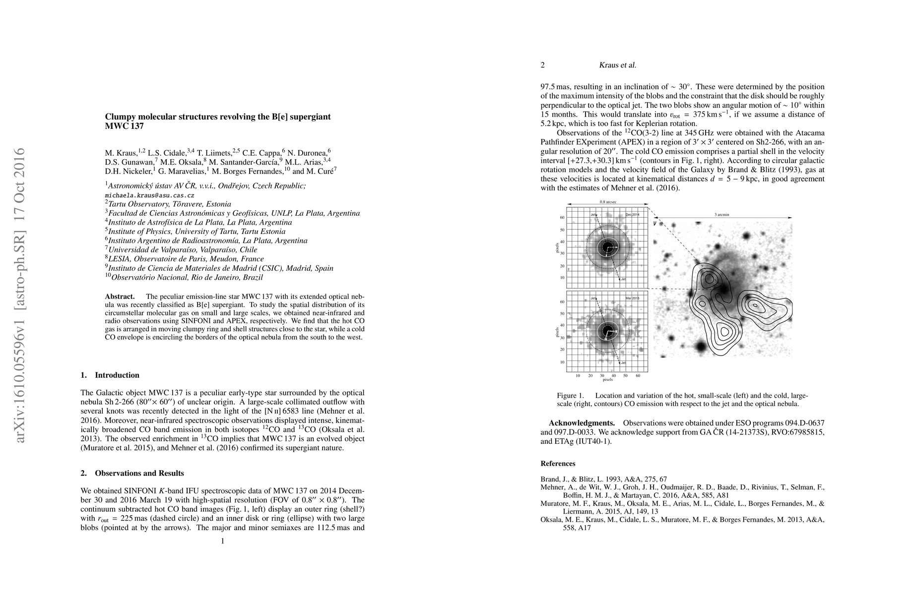 Researchers used infrared and radio observations to study MWC 137, a B[e] supergiant with an extended optical nebula. They found hot CO gas in moving clumpy ring and shell structures close to the star, as well as a cold CO envelope surrounding the nebula's borders.