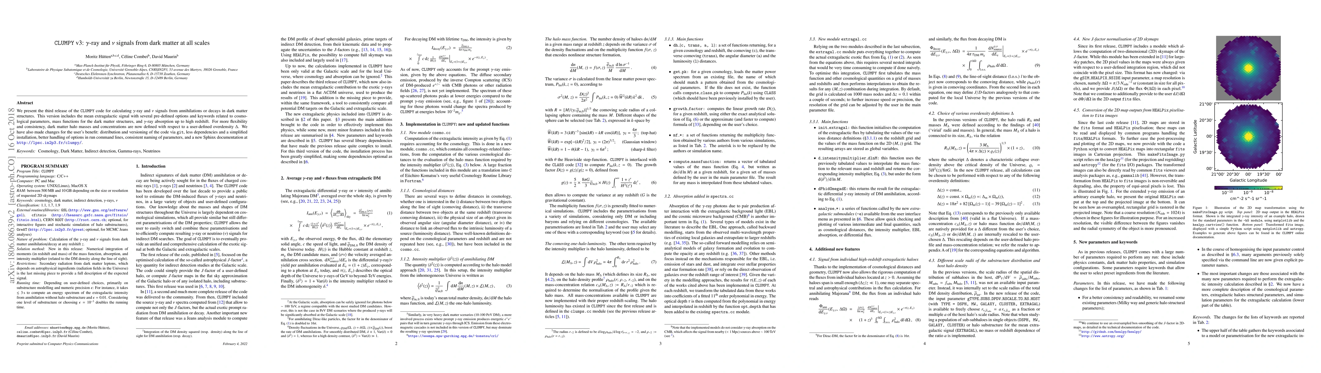 The CLUMPY v3 code calculates $\gamma$-ray and $\nu$ signals from dark matter annihilations or decays, now featuring improved flexibility and consistency with user-defined overdensity parameters and enhanced documentation. The updated version includes pre-defined options for the mean extragalactic signal and reduced dependencies.