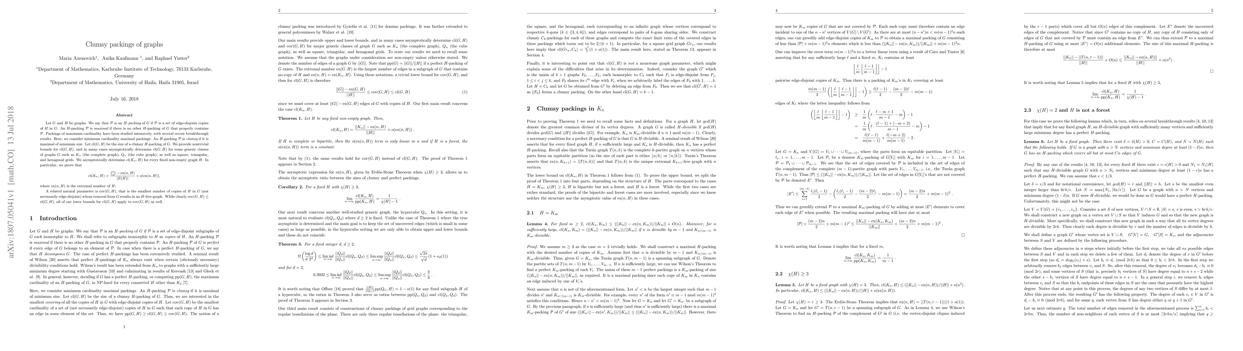 Let $G$ and $H$ be graphs. We say that $P$ is an $H$-packing of $G$ if $P$ is a set of edge-disjoint copies of $H$ in $G$. An $H$-packing $P$ is maximal if there is no other $H$-packing of $G$ that properly contains $P$. Packings of maximum cardinality have been studied intensively, with several recent breakthrough results. Here, we consider minimum cardinality maximal packings. An $H$-packing $P$ is clumsy if it is maximal of minimum size. Let $cl(G,H)$ be the size of a clumsy $H$-packing of $G$. We provide nontrivial bounds for $cl(G,H)$, and in many cases asymptotically determine $cl(G,H)$ for some generic classes of graphs $G$ such as $K_n$ (the complete graph), $Q_n$ (the cube graph), as well as square, triangular, and hexagonal grids. We asymptotically determine $cl(K_n,H)$ for every fixed non-empty graph $H$. In particular, we prove that $$ cl(K_n, H) = \frac{\binom{n}{2}- ex(n,H)}{|E(H)|}+o(ex(n,H)),$$ where $ex(n,H)$ is the extremal number of $H$. A related natural parameter is $cov(G,H)$, that is the smallest number of copies of $H$ in $G$ (not necessarily edge-disjoint) whose removal from $G$ results in an $H$-free graph. While clearly $cov(G,H) \le cl(G,H)$, all of our lower bounds for $cl(G,H)$ apply to $cov(G,H)$ as well.