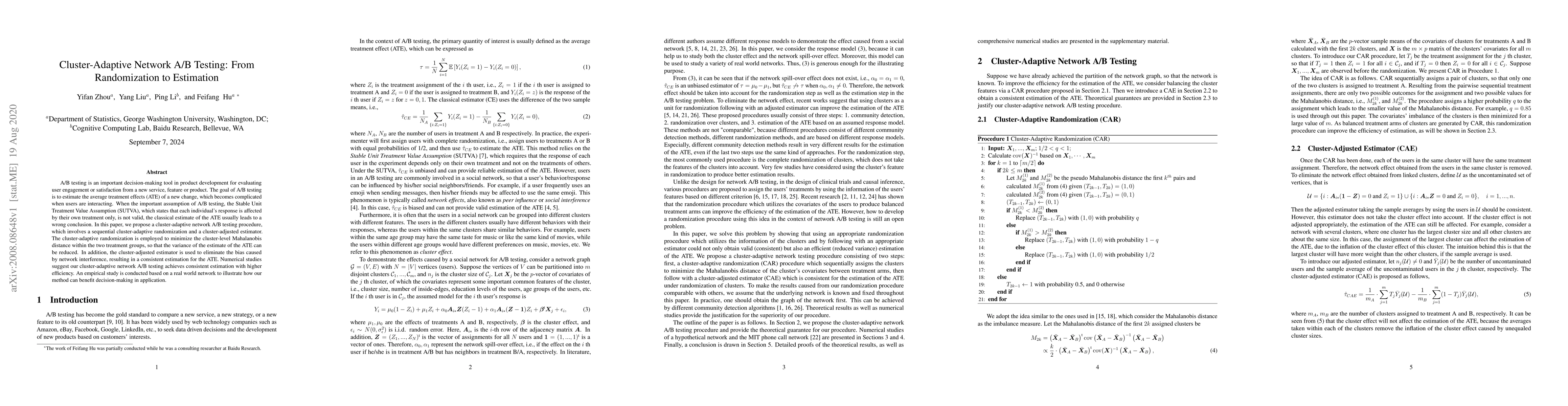 This paper proposes a cluster-adaptive network A/B testing method to accurately estimate average treatment effects when the Stable Unit Treatment Value Assumption fails due to network interference. The method combines cluster-adaptive randomization and a cluster-adjusted estimator to reduce variance and eliminate bias, demonstrating higher efficiency in numerical studies and practical benefits in real-world applications.