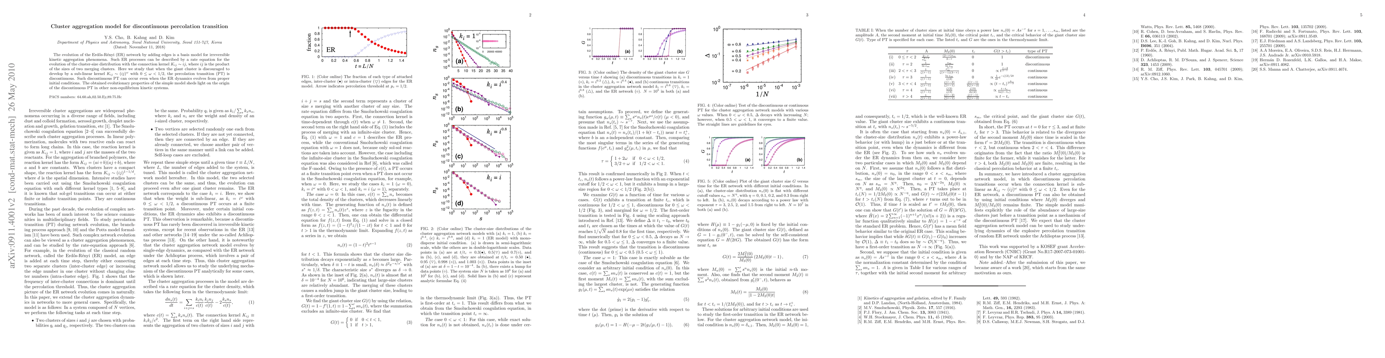 The evolution of the Erd\H{o}s-R\'enyi (ER) network by adding edges can be viewed as a cluster aggregation process. Such ER processes can be described by a rate equation for the evolution of the cluster-size distribution with the connection kernel $K_{ij}\sim ij$, where $ij$ is the product of the sizes of two merging clusters. Here, we study more general cases in which $K_{ij}$ is sub-linear as $K_{ij}\sim (ij)^{\omega}$ with $0 \le \omega < 1/2$; we find that the percolation transition (PT) is discontinuous. Moreover, PT is also discontinuous when the ER dynamics evolves from proper initial conditions. The rate equation approach for such discontinuous PTs enables us to uncover the mechanism underlying the explosive PT under the Achlioptas process.