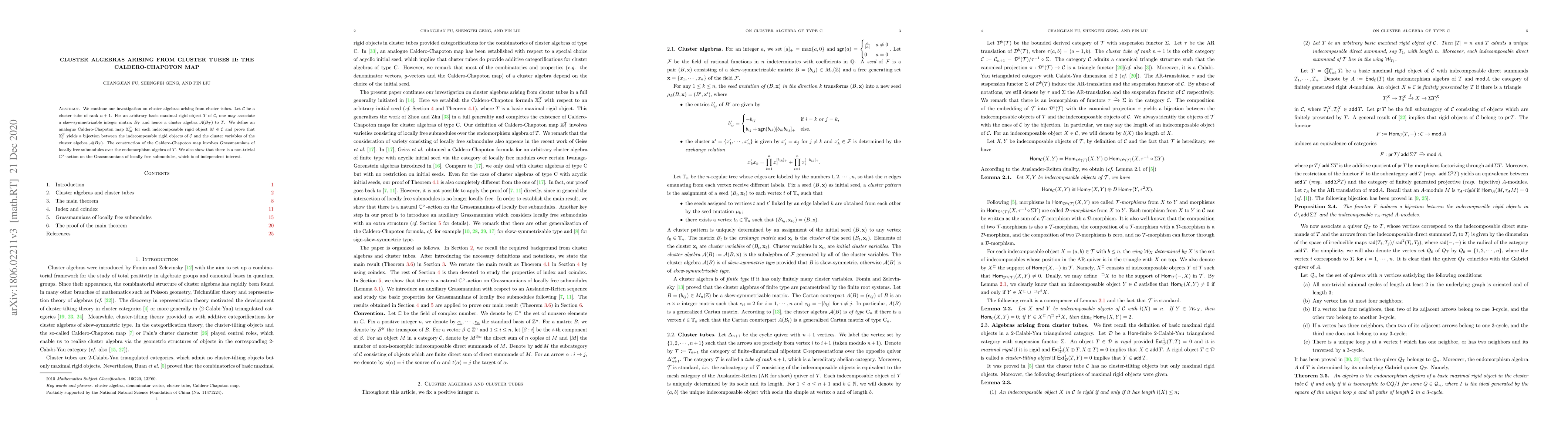 This paper explores cluster algebras derived from cluster tubes, defining a Caldero-Chapoton map that establishes a bijection between indecomposable rigid objects in $\mathcal{C}$ and cluster variables of $\mathcal{A}(B_T)$, using Grassmanians of locally free submodules and demonstrating a non-trivial $\mathbb{C}^{\times}$-action on these Grassmanians.