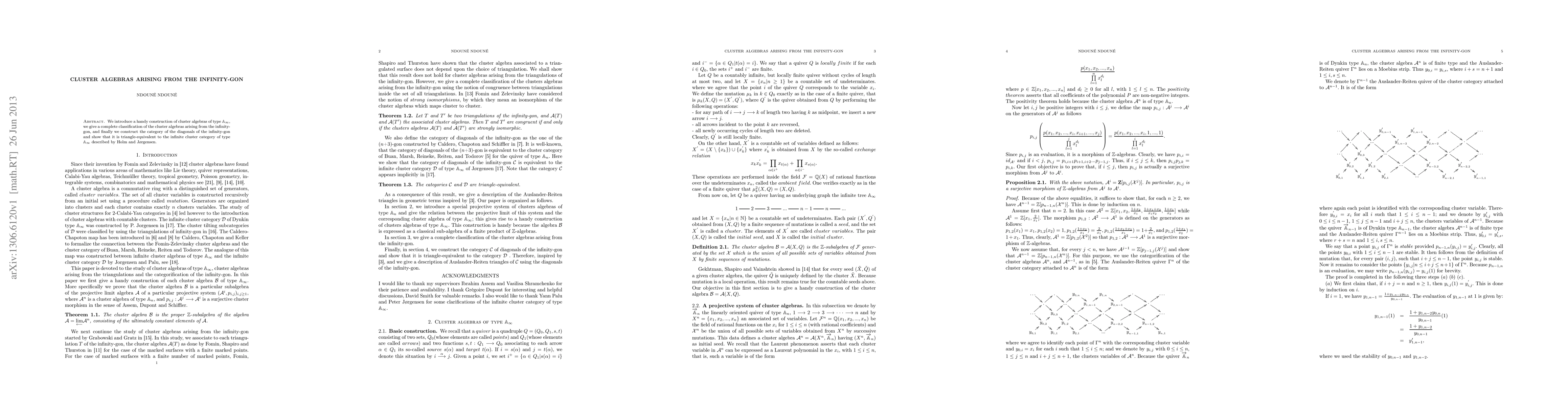 This paper constructs cluster algebras of type $\mathbb{A}_{\infty}$ from an infinity-gon, classifies these algebras, and demonstrates triangle-equivalence between the category of infinity-gon diagonals and the infinite cluster category of type $\mathbb{A}_{\infty}$.
