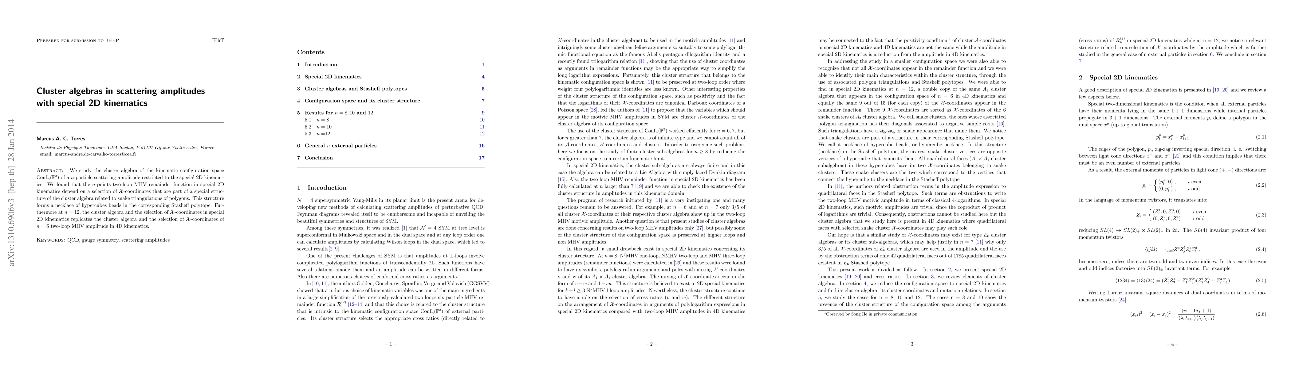 The paper presents a detailed analysis of the cluster algebra structure in special 2D kinematics and its relation to scattering amplitudes, identifying a necklace of hypercubes beads in the Stasheff polytope.