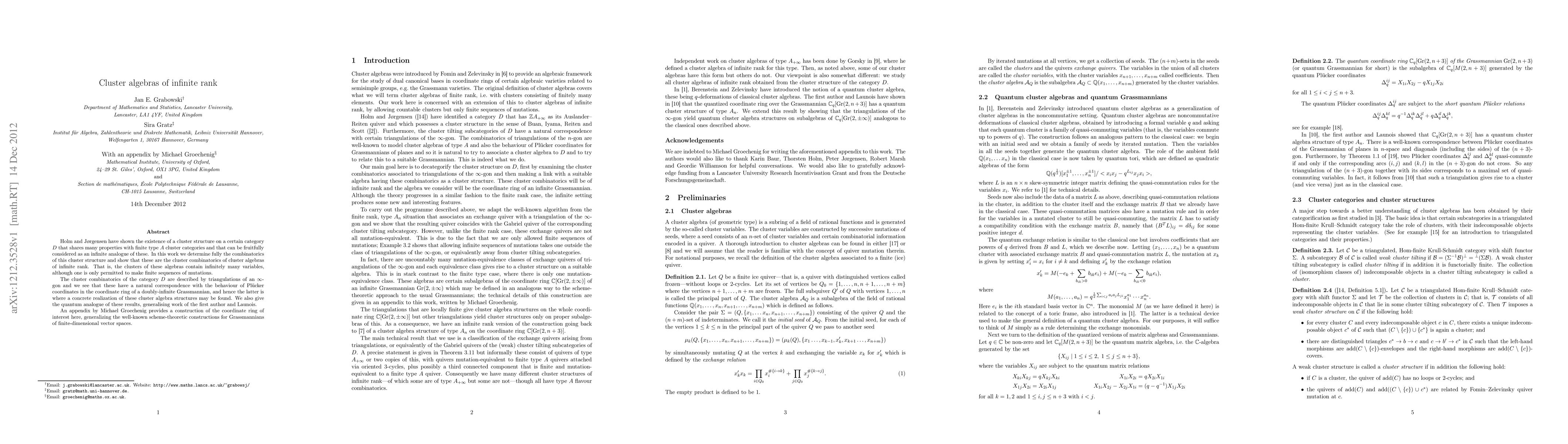 This paper establishes the cluster structure of a category $D$ as an infinite analogue of finite type $A$ cluster categories, characterized by triangulations of an $\infty$-gon. The cluster combinatorics correspond to Plucker coordinates in a doubly-infinite Grassmannian, offering a concrete realization of these structures.