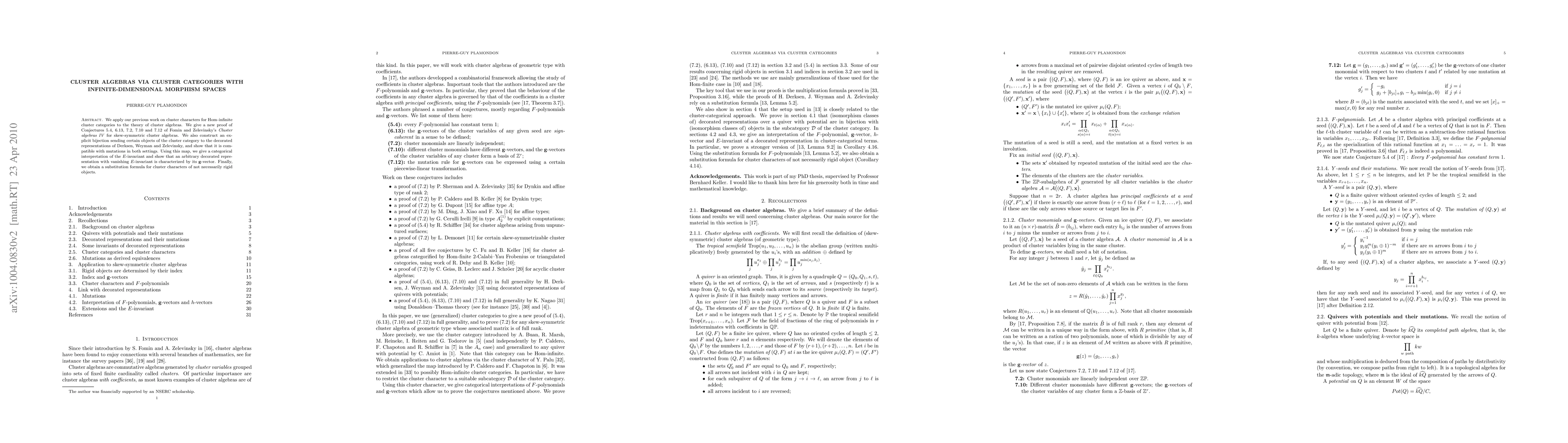 We apply our previous work on cluster characters for Hom-infinite cluster categories to the theory of cluster algebras. We give a new proof of Conjectures 5.4, 6.13, 7.2, 7.10 and 7.12 of Fomin and Zelevinsky's Cluster algebras IV for skew-symmetric cluster algebras. We also construct an explicit bijection sending certain objects of the cluster category to the decorated representations of Derksen, Weyman and Zelevinsky, and show that it is compatible with mutations in both settings. Using this map, we give a categorical interpretation of the E-invariant and show that an arbitrary decorated representation with vanishing E-invariant is characterized by its g-vector. Finally, we obtain a substitution formula for cluster characters of not necessarily rigid objects.