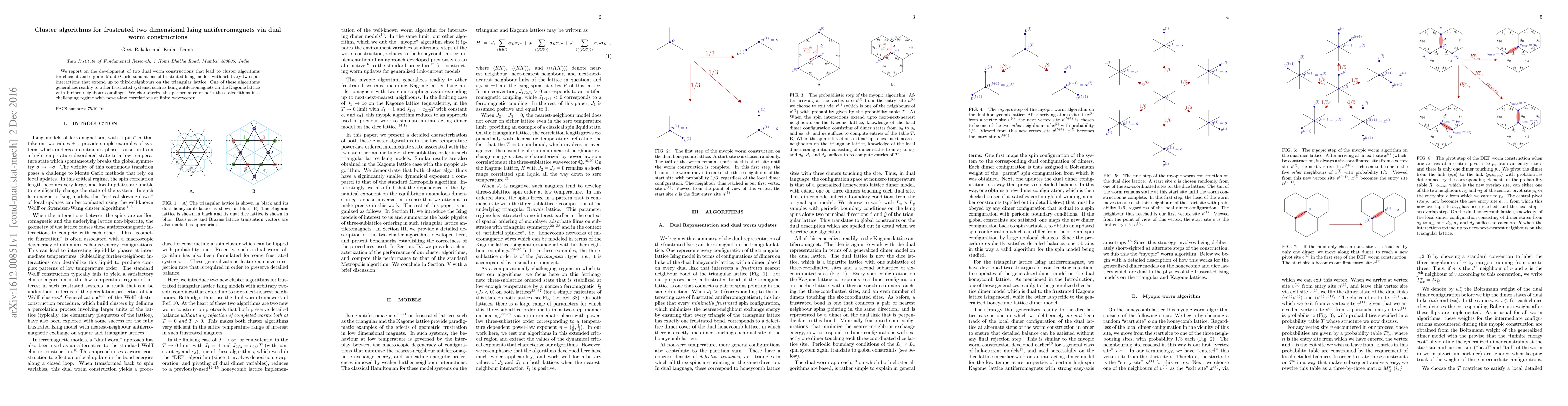 This paper presents two dual worm constructions that enable cluster algorithms for efficient Monte Carlo simulations of frustrated two-dimensional Ising antiferromagnets, specifically on the triangular lattice. The proposed algorithms also extend to other systems like Kagome lattices and are evaluated in a challenging regime with power-law correlations.