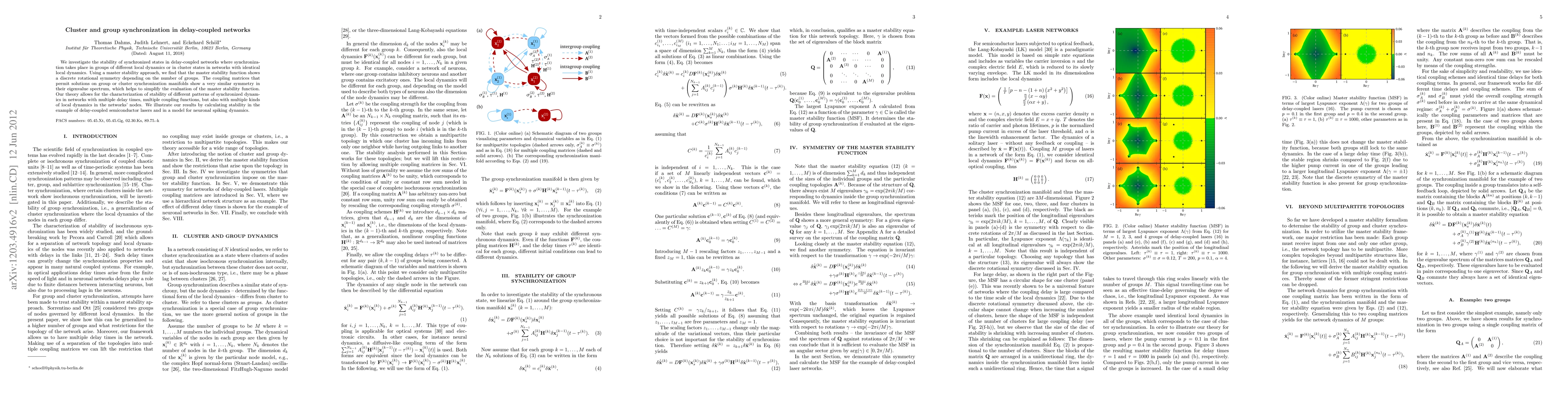 This paper explores the stability of synchronized states in delay-coupled networks, identifying discrete rotational symmetry in the master stability function based on the number of synchronization groups. The study uses a master stability approach to characterize stability patterns in networks with varying local dynamics and multiple delay times.