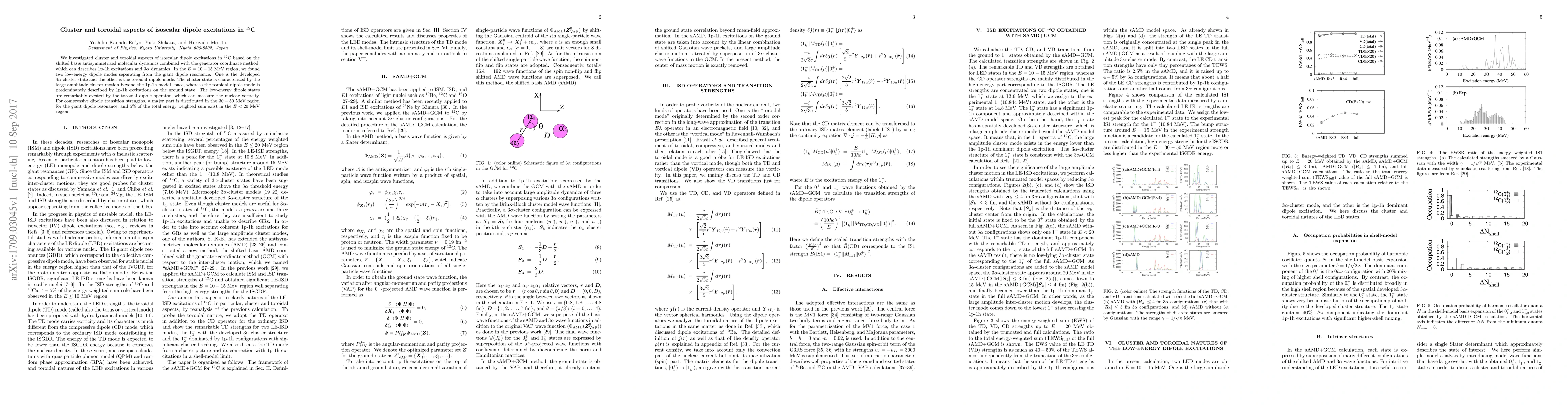 This study explores isoscalar dipole excitations in $^{12}$C using advanced theoretical methods, identifying two low-energy dipole modes: a $3\alpha$-cluster state and a toroidal dipole mode, with significant implications for nuclear dynamics and structure.