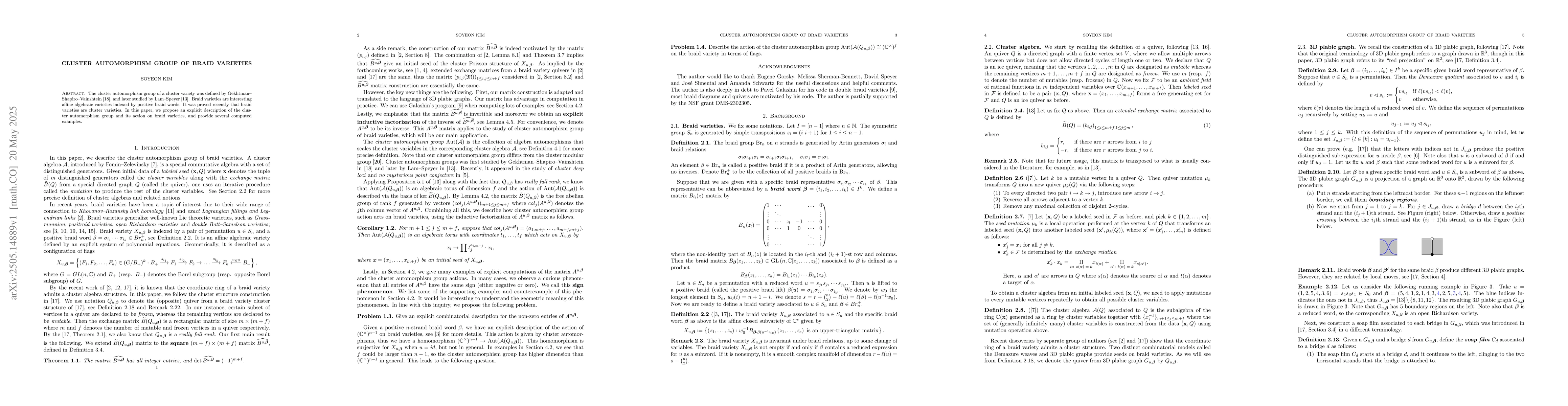 This research contributes to the understanding of cluster automorphism groups in the context of braid varieties, which are important objects in combinatorial representation theory and algebraic geometry.