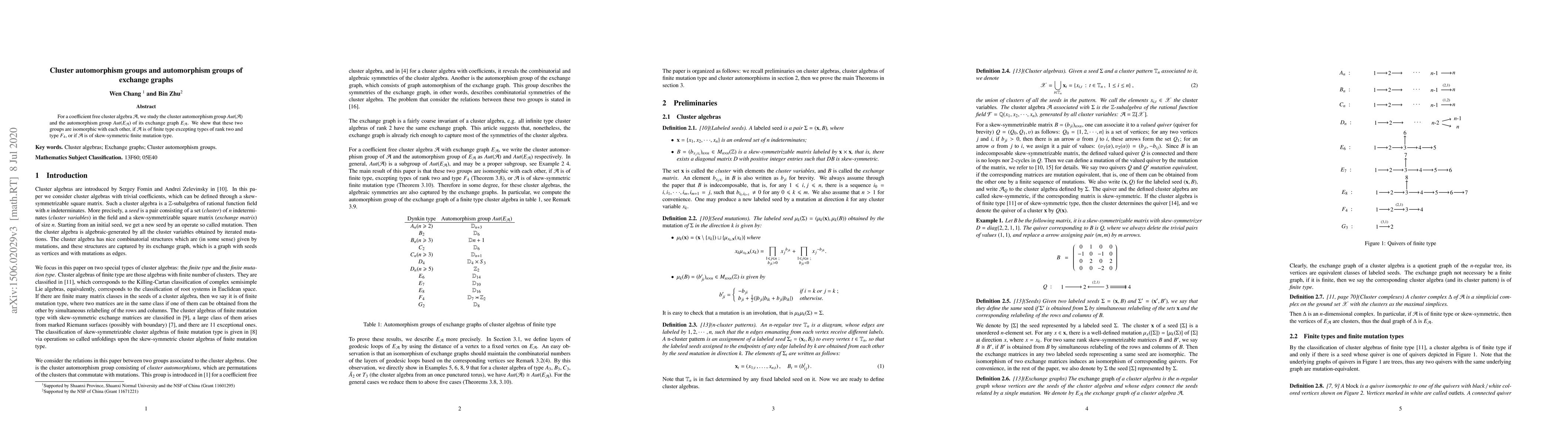 This paper investigates the isomorphism between the cluster automorphism group $Aut(\mathcal{A})$ and the automorphism group $Aut(E_{\mathcal{A}})$ of the exchange graph for a coefficient-free cluster algebra $\mathcal{A}$. The study finds that these groups are isomorphic under certain conditions, excluding rank two and type $F_4$ cases, and for skew-symmetric finite mutation types.
