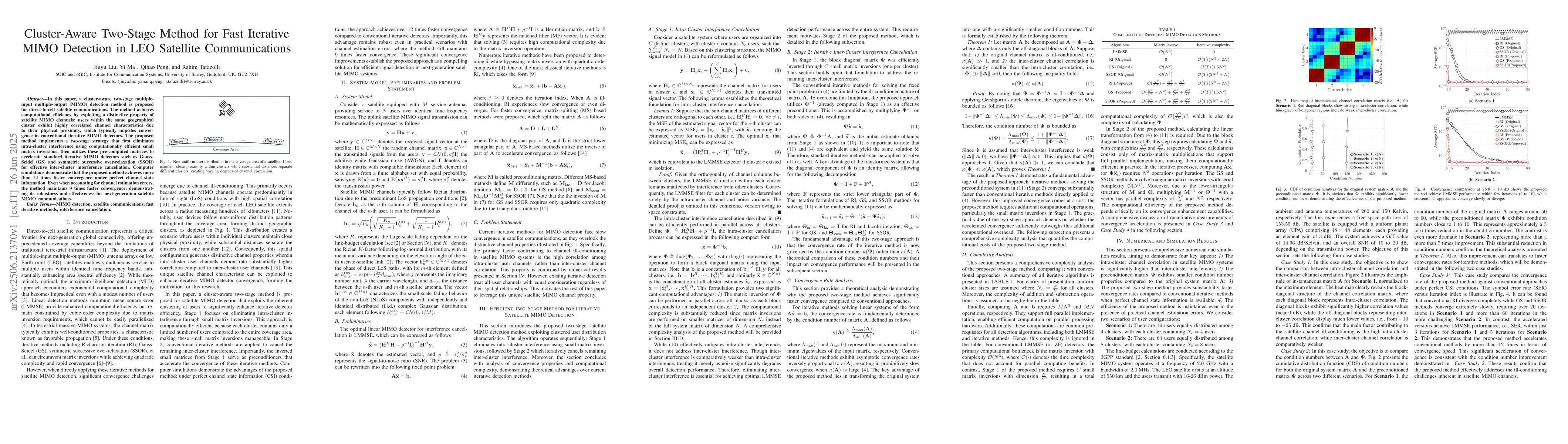 In this paper, a cluster-aware two-stage multiple-input multiple-output (MIMO) detection method is proposed for direct-to-cell satellite communications. The method achieves computational efficiency by exploiting a distinctive property of satellite MIMO channels: users within the same geographical cluster exhibit highly correlated channel characteristics due to their physical proximity, which typically impedes convergence in conventional iterative MIMO detectors. The proposed method implements a two-stage strategy that first eliminates intra-cluster interference using computationally efficient small matrix inversions, then utilizes these pre-computed matrices to accelerate standard iterative MIMO detectors such as Gauss-Seidel (GS) and symmetric successive over-relaxation (SSOR) for effective inter-cluster interference cancellation. Computer simulations demonstrate that the proposed method achieves more than 12 times faster convergence under perfect channel state information. Even when accounting for channel estimation errors, the method maintains 9 times faster convergence, demonstrating its robustness and effectiveness for next-generation satellite MIMO communications.