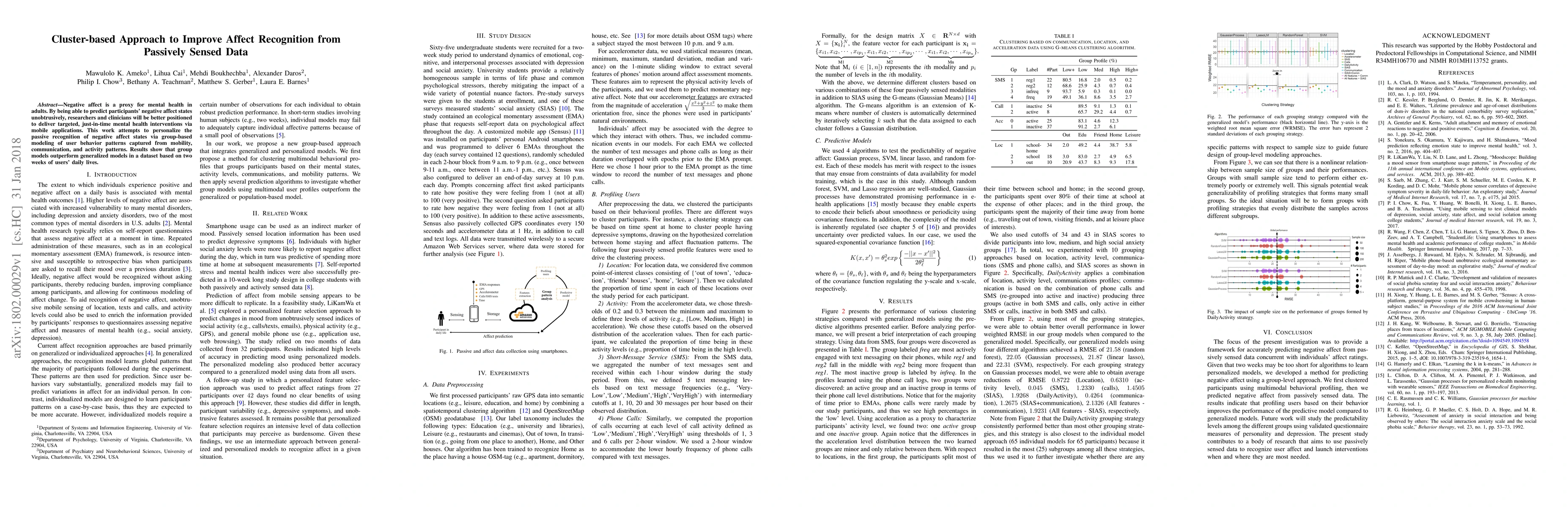 A new approach using group-based modeling of user behavior patterns improves affect recognition from passively sensed data, outperforming individual models in predicting negative affect states.