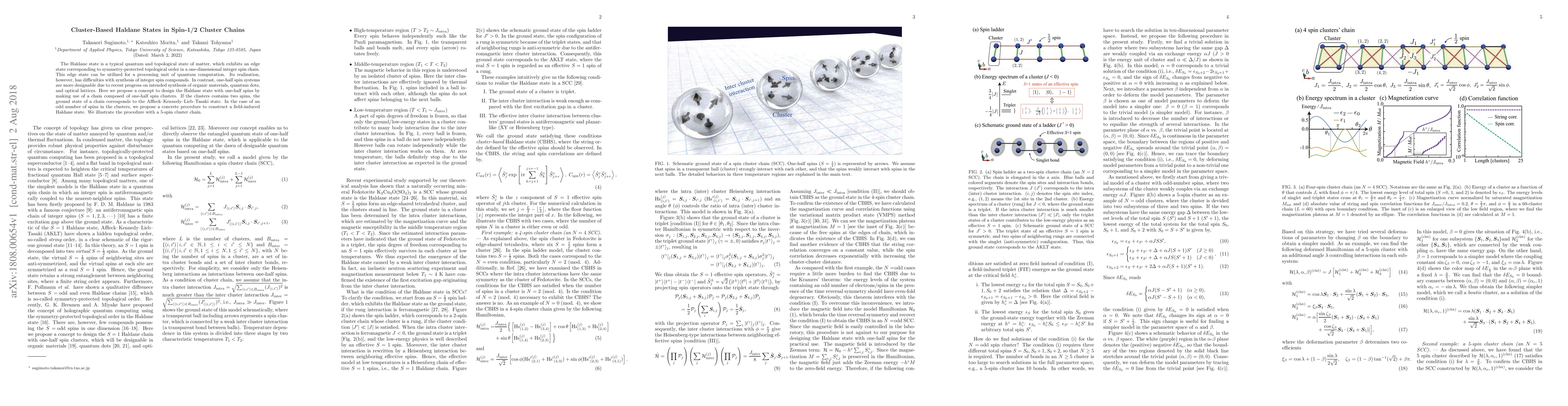This paper proposes a method for realizing Haldane states in spin-1/2 cluster chains, leveraging the designability of one-half spin systems. It outlines a procedure to construct a field-induced Haldane state in chains with an odd number of spins in clusters, exemplified by a 5-spin cluster chain.