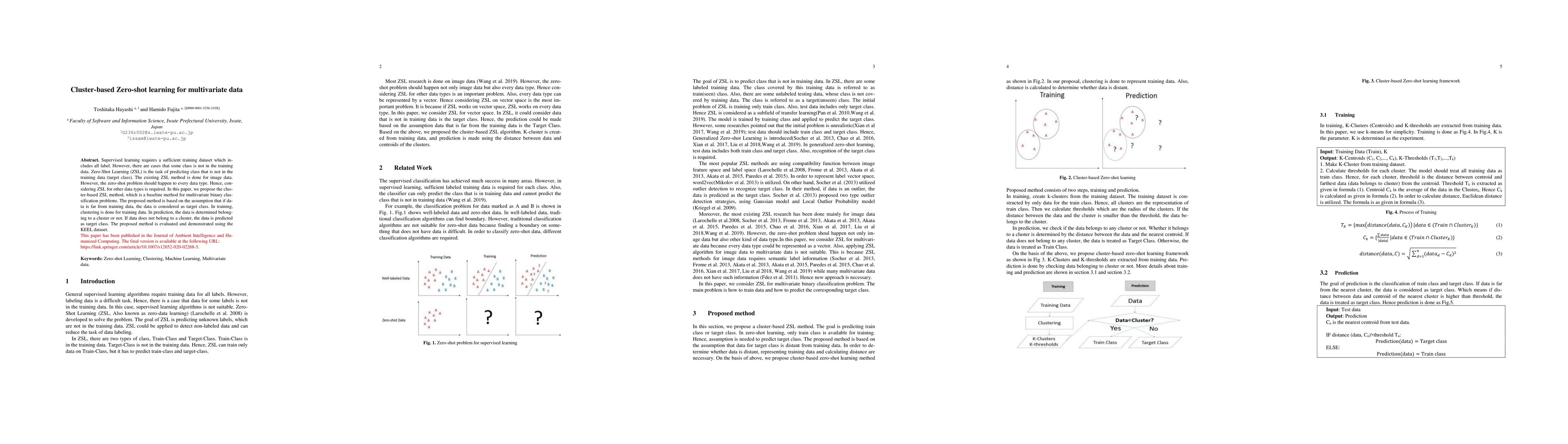 This paper proposes a cluster-based zero-shot learning method for multivariate binary classification problems, where data is predicted as the target class if it doesn't belong to any training cluster.