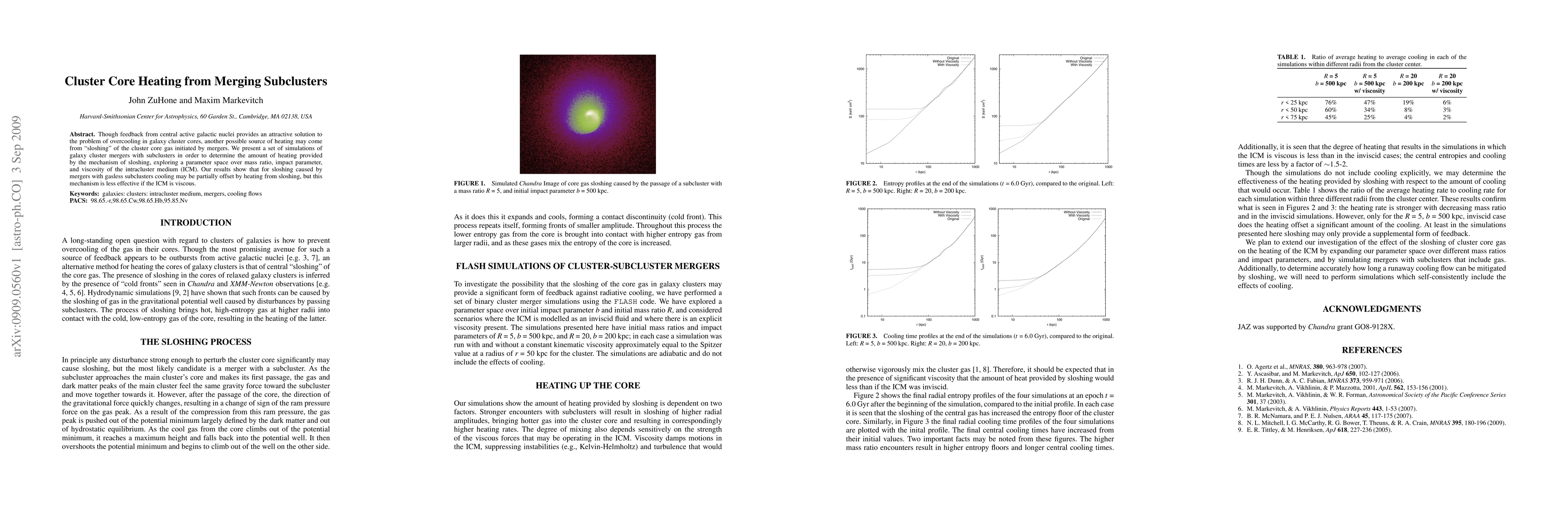 Though feedback from central active galactic nuclei provides an attractive solution to the problem of overcooling in galaxy cluster cores, another possible source of heating may come from ``sloshing'' of the cluster core gas initiated by mergers. We present a set of simulations of galaxy cluster mergers with subclusters in order to determine the amount of heating provided by the mechanism of sloshing, exploring a parameter space over mass ratio, impact parameter, and viscosity of the intracluster medium (ICM). Our results show that for sloshing caused by mergers with gasless subclusters cooling may be partially offset by heating from sloshing, but this mechanism is less effective if the ICM is viscous.