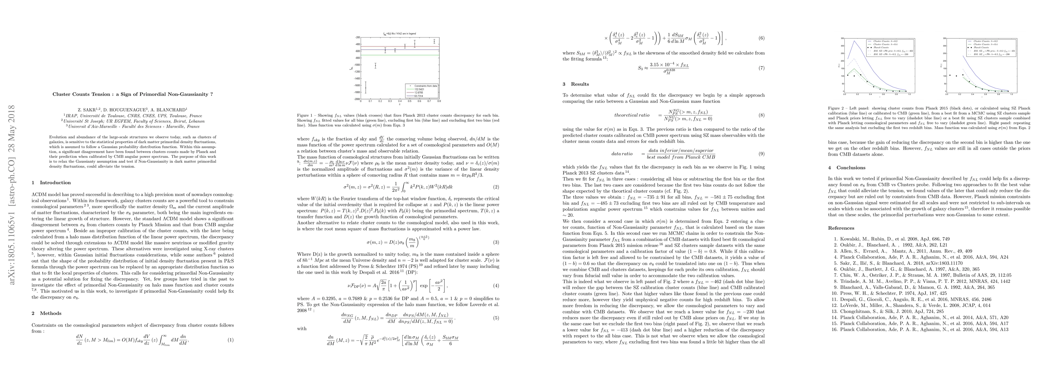 This paper investigates whether primordial non-Gaussianity in dark matter density fluctuations can resolve the discrepancy between observed cluster counts from Planck and predictions based on the CMB angular power spectrum. It explores if relaxing the Gaussian assumption might alleviate the cluster counts tension.