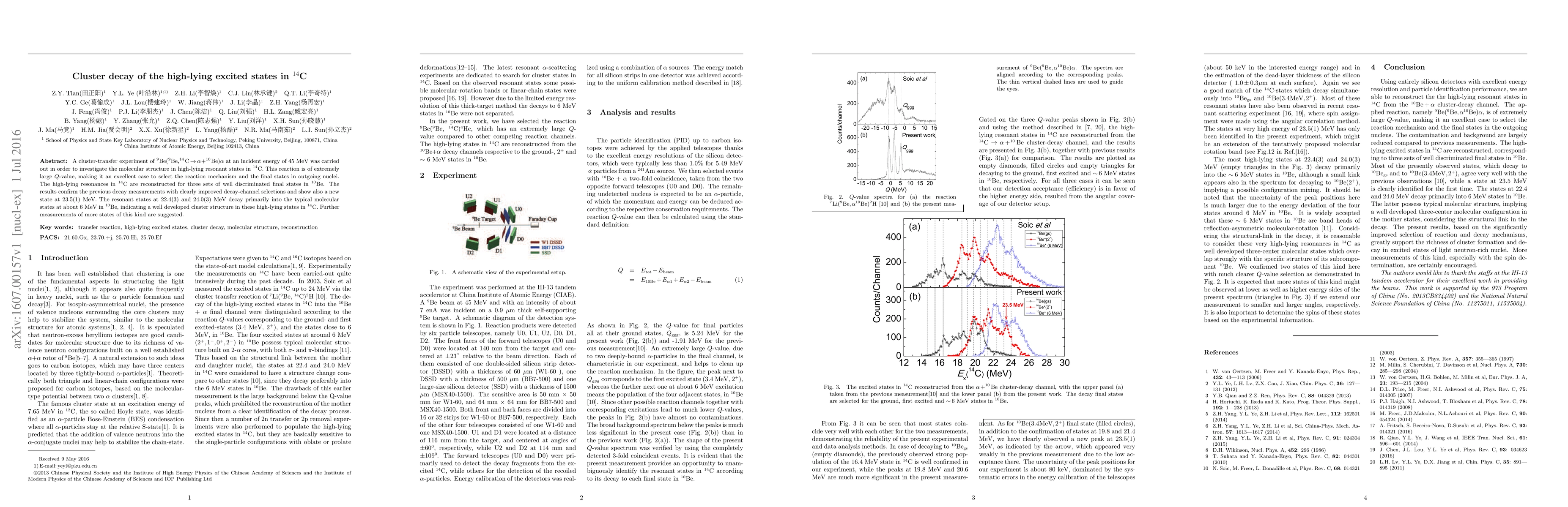 A cluster-transfer experiment revealed new insights into $^{14}$C's high-lying excited states, confirming previous decay measurements with improved channel selections and identifying a previously unknown state at 23.5 MeV.