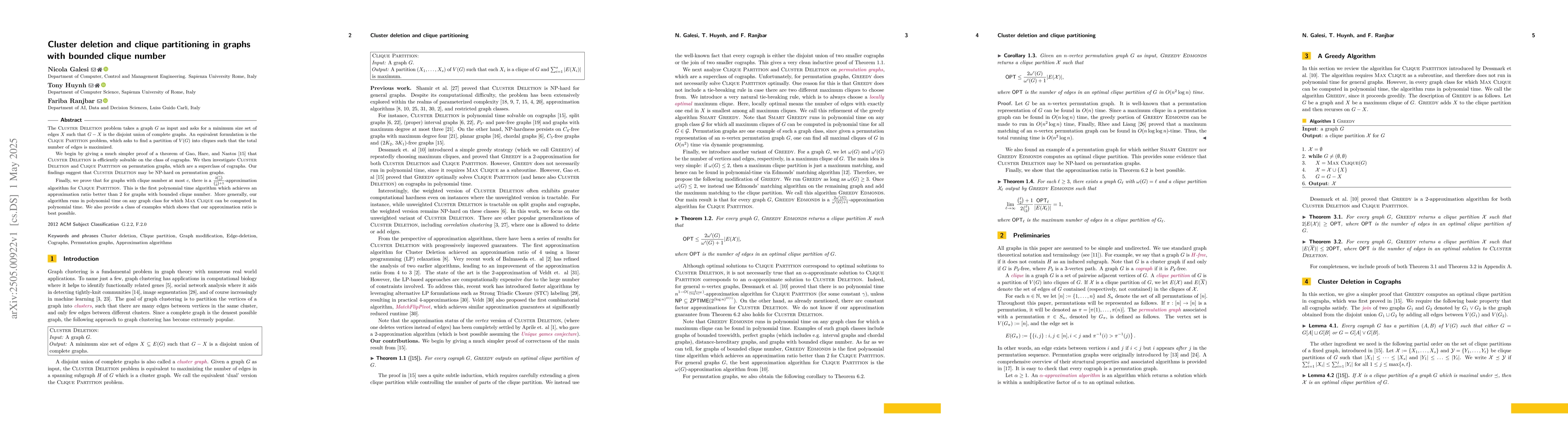 The paper investigates Cluster Deletion and Clique Partition problems on specific graph classes, providing simplified proofs and approximation algorithms.