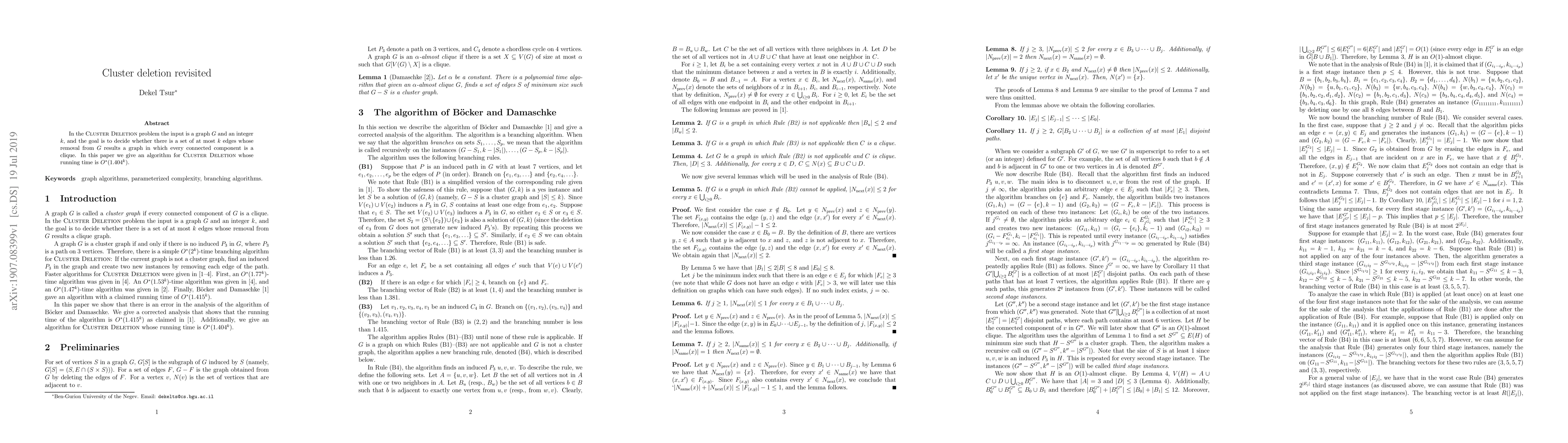 This paper presents an improved algorithm for the Cluster Deletion problem, determining if a graph can be reduced to a collection of cliques by removing at most k edges. The proposed solution has a running time of O^*(1.404^k), offering a more efficient approach compared to previous methods.