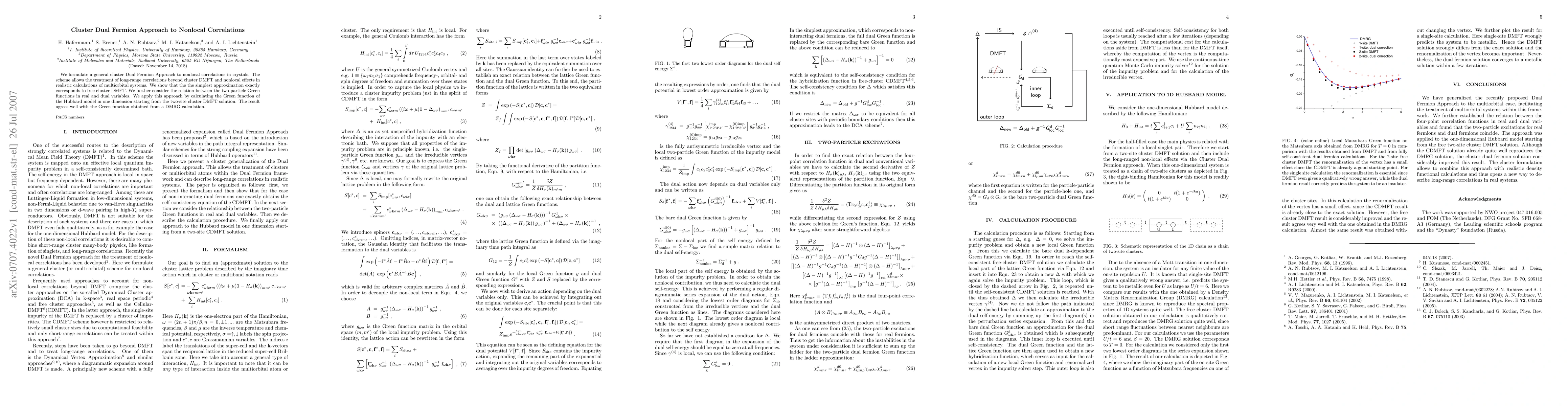 This paper introduces a cluster Dual Fermion Approach for handling nonlocal correlations in crystals, extending beyond cluster DMFT. It demonstrates the method's accuracy by comparing its results for the Hubbard model's Green function to those from DMRG calculations.