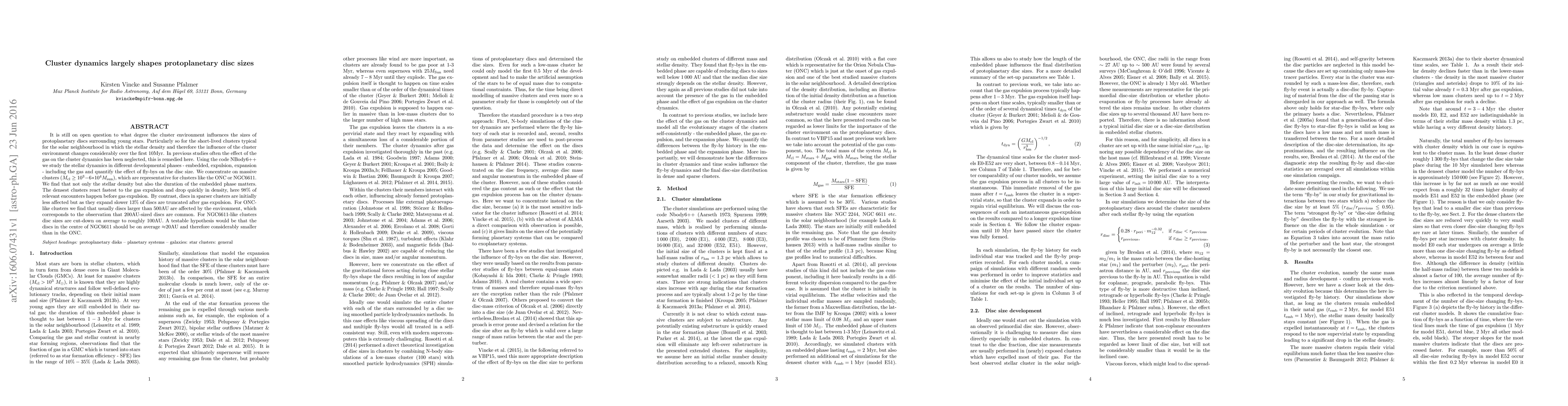 This study investigates how cluster dynamics influence the sizes of protoplanetary discs, finding that dense clusters rapidly adjust to gas expulsion, while less dense clusters experience more gradual changes. Discs in dense clusters like the Orion Nebula Cluster tend to shrink to sizes around 500 AU, whereas those in less dense clusters like NGC 6611 are typically reduced to around 100 AU.