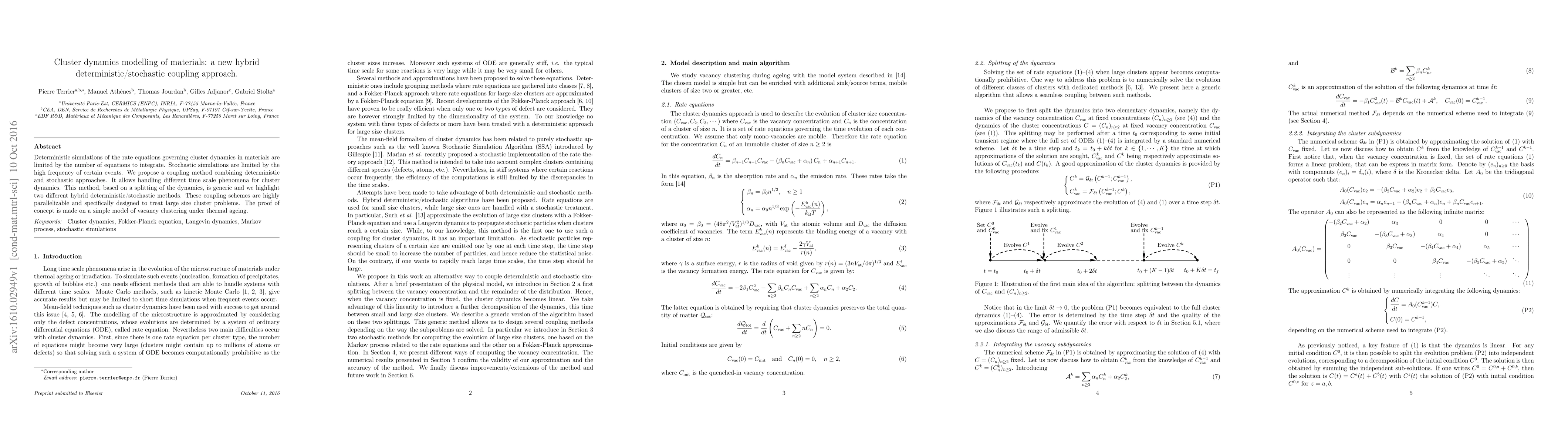 Researchers propose a new method combining deterministic and stochastic approaches to model cluster dynamics in materials, allowing for handling of different time scale phenomena.