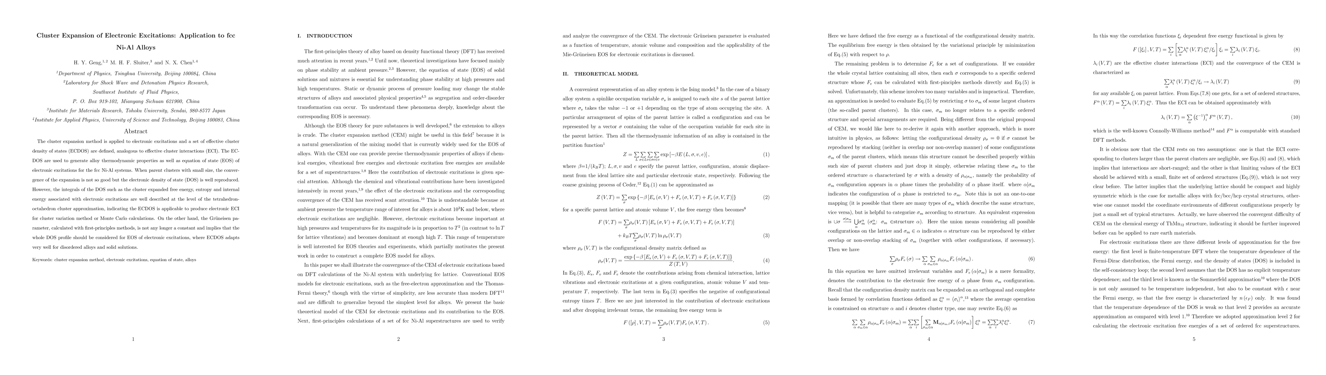 Researchers applied cluster expansion to study electronic excitations in fcc Ni-Al alloys, finding that effective cluster density of states can accurately predict alloy thermodynamic properties and equation of state, but also highlights the need to consider the entire DOS profile for a more accurate Gruneisen parameter.