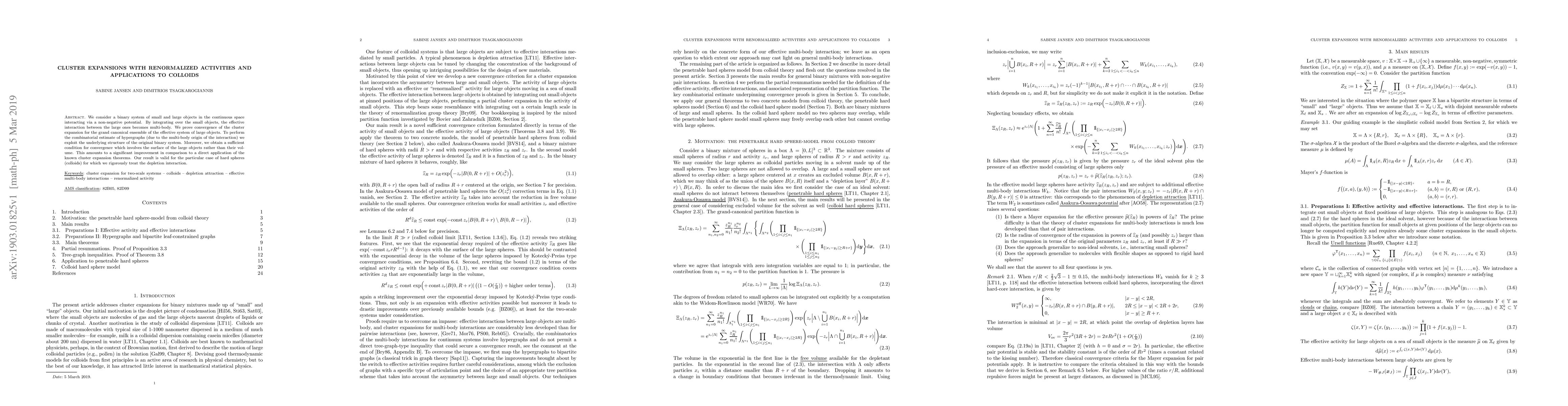 We consider a binary system of small and large objects in the continuous space interacting via a non-negative potential. By integrating over the small objects, the effective interaction between the large ones becomes multi-body. We prove convergence of the cluster expansion for the grand canonical ensemble of the effective system of large objects. To perform the combinatorial estimate of hypergraphs (due to the multi-body origin of the interaction) we exploit the underlying structure of the original binary system. Moreover, we obtain a sufficient condition for convergence which involves the surface of the large objects rather than their volume. This amounts to a significant improvement in comparison to a direct application of the known cluster expansion theorems. Our result is valid for the particular case of hard spheres (colloids) for which we rigorously treat the depletion interaction.