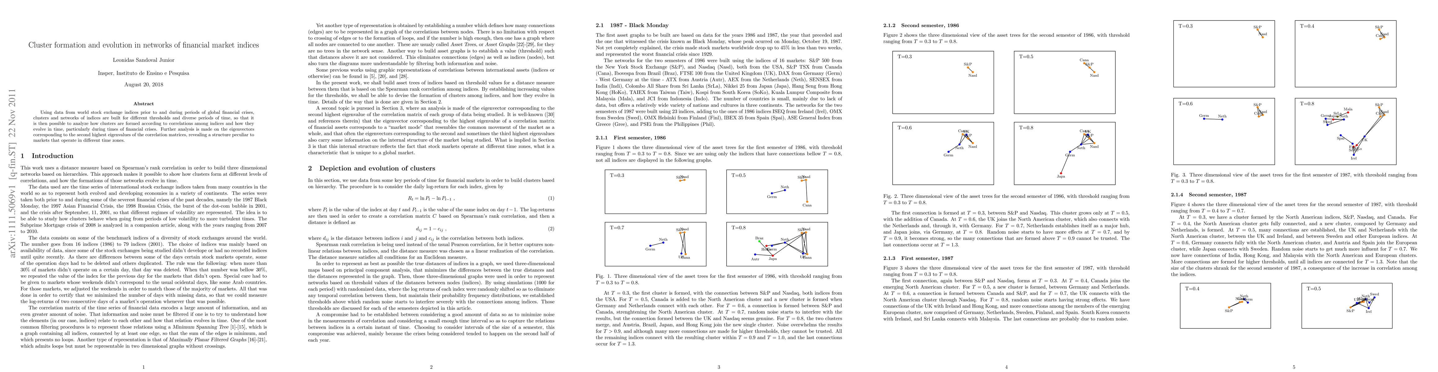 Using data from world stock exchange indices prior to and during periods of global financial crises, clusters and networks of indices are built for different thresholds and diverse periods of time, so that it is then possible to analyze how clusters are formed according to correlations among indices and how they evolve in time, particularly during times of financial crises. Further analysis is made on the eigenvectors corresponding to the second highest eigenvalues of the correlation matrices, revealing a structure peculiar to markets that operate in different time zones.