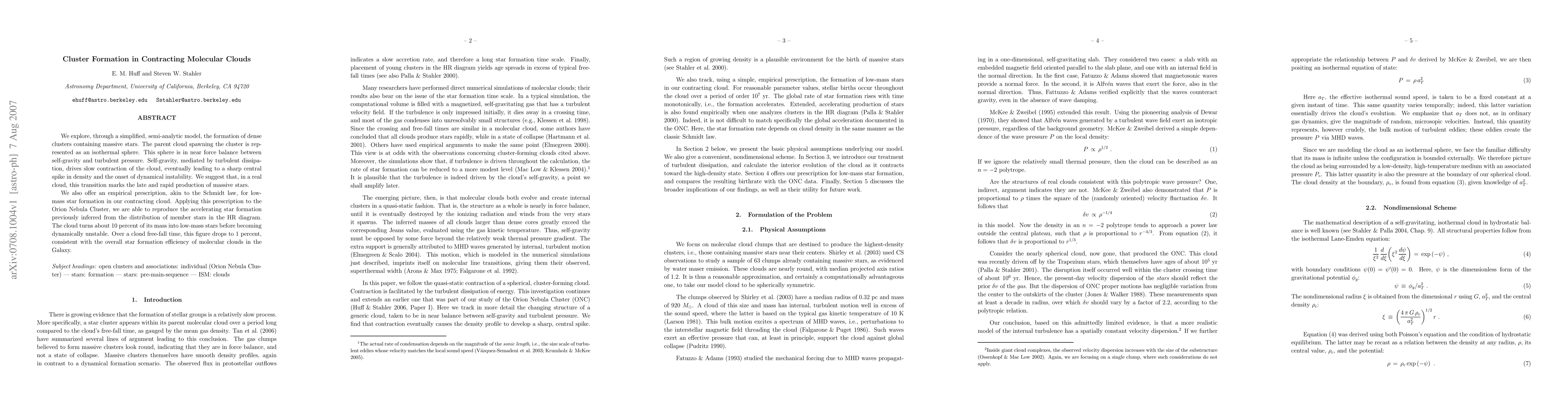 We explore, through a simplified, semi-analytic model, the formation of dense clusters containing massive stars. The parent cloud spawning the cluster is represented as an isothermal sphere. This sphere is in near force balance between self-gravity and turbulent pressure. Self-gravity, mediated by turbulent dissipation, drives slow contraction of the cloud, eventually leading to a sharp central spike in density and the onset of dynamical instability. We suggest that, in a real cloud, this transition marks the late and rapid production of massive stars. We also offer an empirical prescription, akin to the Schmidt law, for low-mass star formation in our contracting cloud. Applying this prescription to the Orion Nebula Cluster, we are able to reproduce the accelerating star formation previously inferred from the distribution of member stars in the HR diagram. The cloud turns about 10 percent of its mass into low-mass stars before becoming dynamically unstable. Over a cloud free-fall time, this figure drops to 1 percent, consistent with the overall star formation efficiency of molecular clouds in the Galaxy.