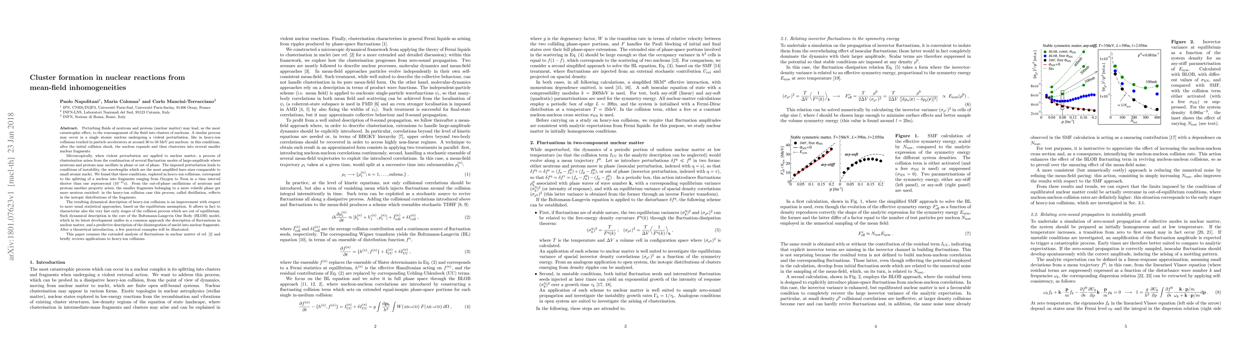 Perturbing fluids of neutrons and protons (nuclear matter) may lead, as the most catastrophic effect, to the rearrangement of the fluid into clusters of nucleons. A similar process may occur in a single atomic nucleus undergoing a violent perturbation, like in heavy-ion collisions tracked in particle accelerators at around 30 to 50 MeV per nucleon: in this conditions, after the initial collision shock, the nucleus expands and then clusterises into several smaller nuclear fragments. Microscopically, when violent perturbation are applied to nuclear matter, a process of clusterisation arises from the combination of several fluctuation modes of large-amplitude where neutrons and protons may oscillate in phase or out of phase. The imposed perturbation leads to conditions of instability, the wavelengths which are the most amplified have sizes comparable to small atomic nuclei. We found that these conditions, explored in heavy-ion collisions, correspond to the splitting of a nucleus into fragments ranging from Oxygen to Neon in a time interval shorter than one zeptosecond (10$^{-21}$s). From the out-of-phase oscillations of neutrons and protons another property arises, the smaller fragments belonging to a more volatile phase get more neutron enriched: in the heavy-ion collision case this process, called distillation, reflects in the isotopic distributions of the fragments. The resulting dynamical description of heavy-ion collisions is an improvement with respect to more usual statistical approaches, based on the equilibrium assumption. It allows in fact to characterise also the very fast early stages of the collision process which are out of equilibrium. Such dynamical description is the core of the Boltzmann-Langevin One Body (BLOB) model, which unifies in a common description fluctuations in nuclear matter and the disintegration of nuclei into nuclear fragments.