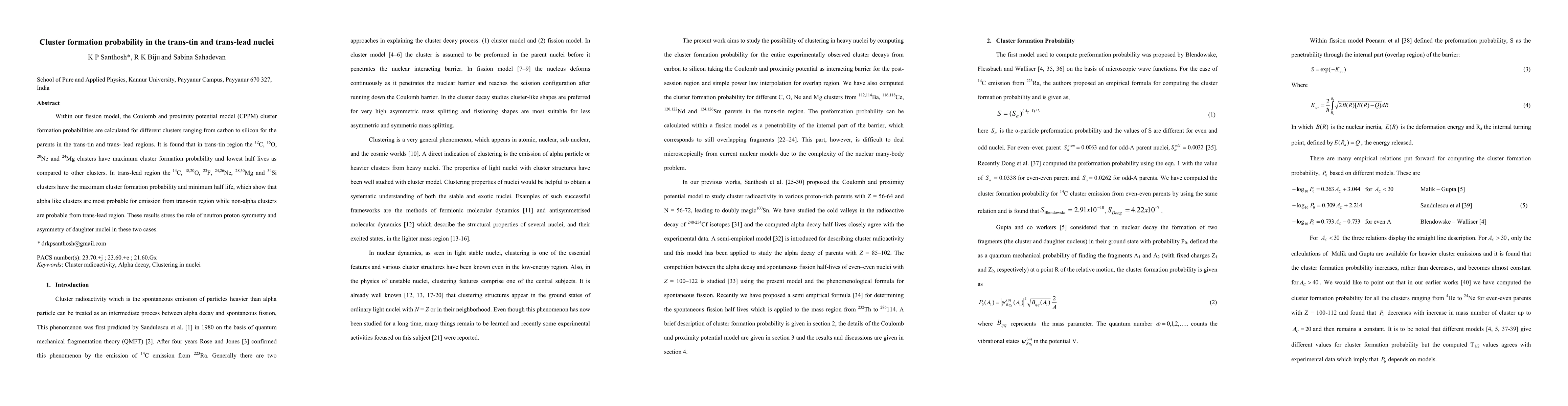 Within our fission model, the Coulomb and proximity potential model (CPPM) cluster formation probabilities are calculated for different clusters ranging from carbon to silicon for the parents in the trans-tin and trans- lead regions. It is found that in trans-tin region the 12^C, 16^O, 20^Ne and 24^Mg clusters have maximum cluster formation probability and lowest half lives as compared to other clusters. In trans-lead region the 14^C, 18, 20^O, 23^F, 24,26^Ne, 28,30^Mg and 34^Si clusters have the maximum cluster formation probability and minimum half life, which show that alpha like clusters are most probable for emission from trans-tin region while non-alpha clusters are probable from trans-lead region. These results stress the role of neutron proton symmetry and asymmetry of daughter nuclei in these two cases.