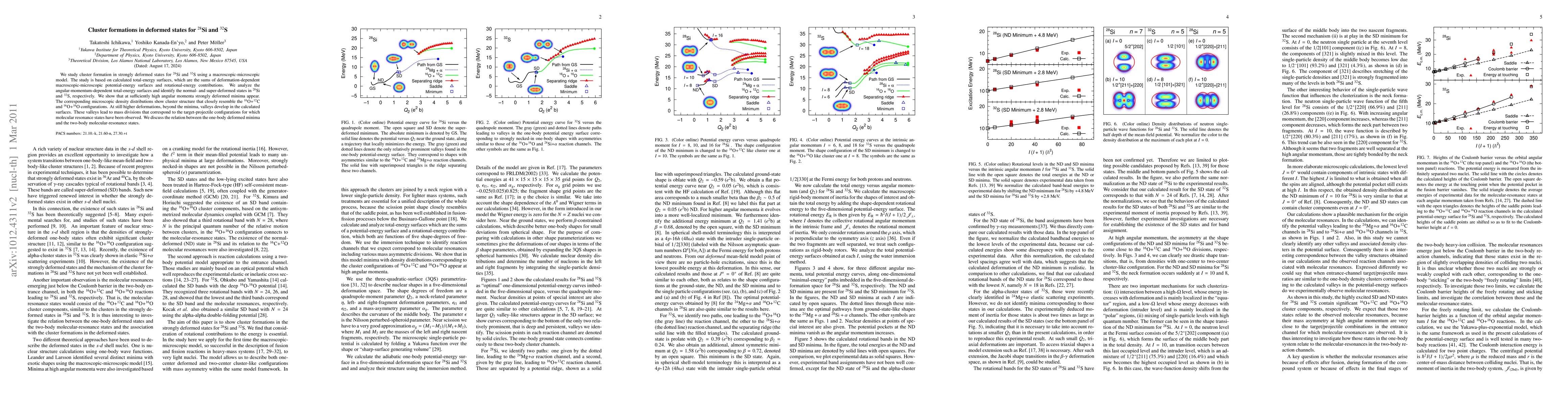 Researchers study cluster formation in deformed states of two sulfur isotopes using a macroscopic-microscopic model, revealing normal and super-deformed states with cluster structures similar to $^{16}$O+$^{12}$C and $^{16}$O+$^{16}$O configurations.