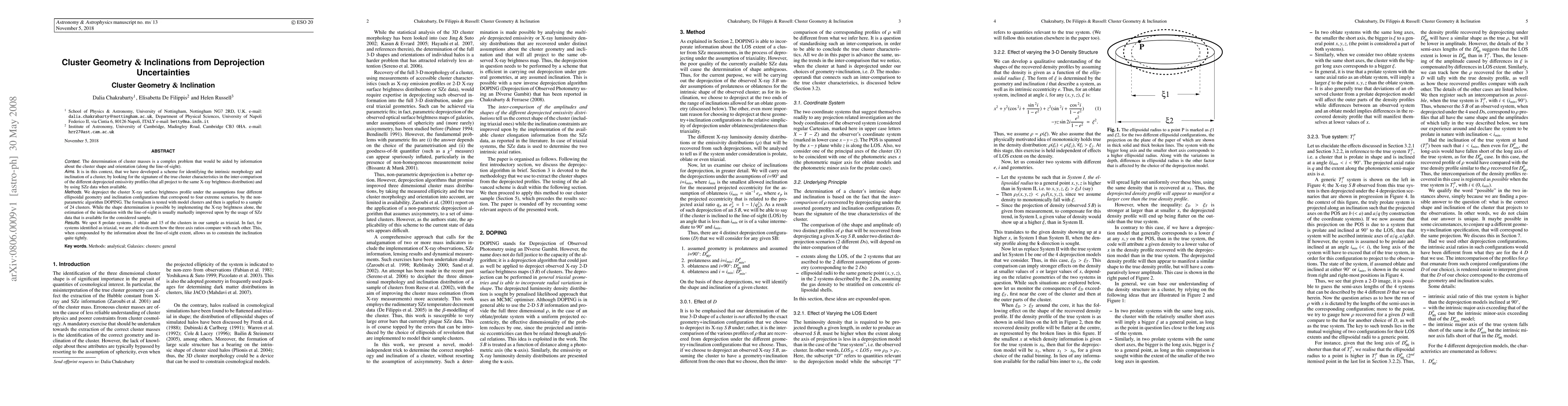 {The determination of cluster masses is a complex problem that would be aided by information about the cluster shape and orientation (along the line-of-sight).} {It is in this context, that we have developed a scheme for identifying the intrinsic morphology and inclination of a cluster, by looking for the signature of the true cluster characteristics in the inter-comparison of the different deprojected emissivity profiles (that all project to the same X-ray brightness distribution) and by using SZe data when available.} {We deproject the cluster X-ray surface brightness profile under the assumptions of four different geometry and inclination configurations for the observed system; these 4 configurations correspond to four extreme geometry+inclination scenarios. The deprojection in question is performed by the non-parametric algorithm DOPING. The formalism is tested with model systems and then is applied to a sample of 24 clusters. While the shape determination is possible by implementing the X-ray brightness alone, the estimation of the inclination is usually markedly improved by the usage of SZe data that is available for the considered sample.}{We spot 8 prolate systems, 1 oblate and 15 of the clusters in our sample as triaxial. In fact, for systems identified as triaxial, we are able to discern how the three semi-axes lengths compare with each other. This, when compounded by the information about the line-of-sight extent, allows us to constrain the inclination quite tightly and offers the two intrinsic axial ratios of the triaxial systems.}{}