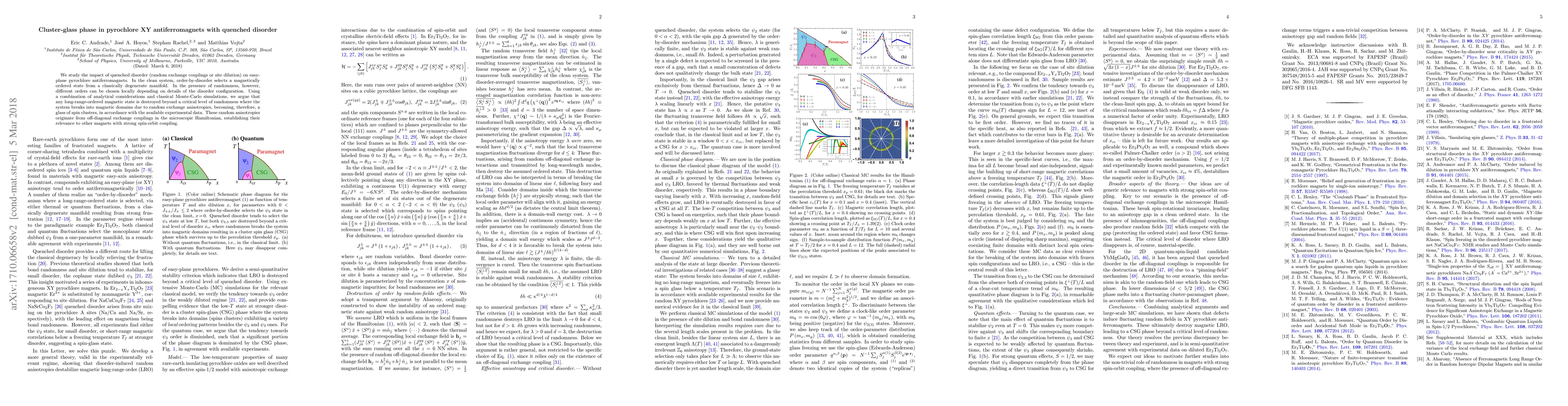This paper investigates how quenched disorder in pyrochlore antiferromagnets disrupts long-range magnetic order, leading to a cluster-glass phase characterized by spin cluster domains due to random exchange anisotropies, as confirmed by analytical and simulation studies. Experimental data supports the formation of this disordered magnetic state beyond a critical level of randomness.