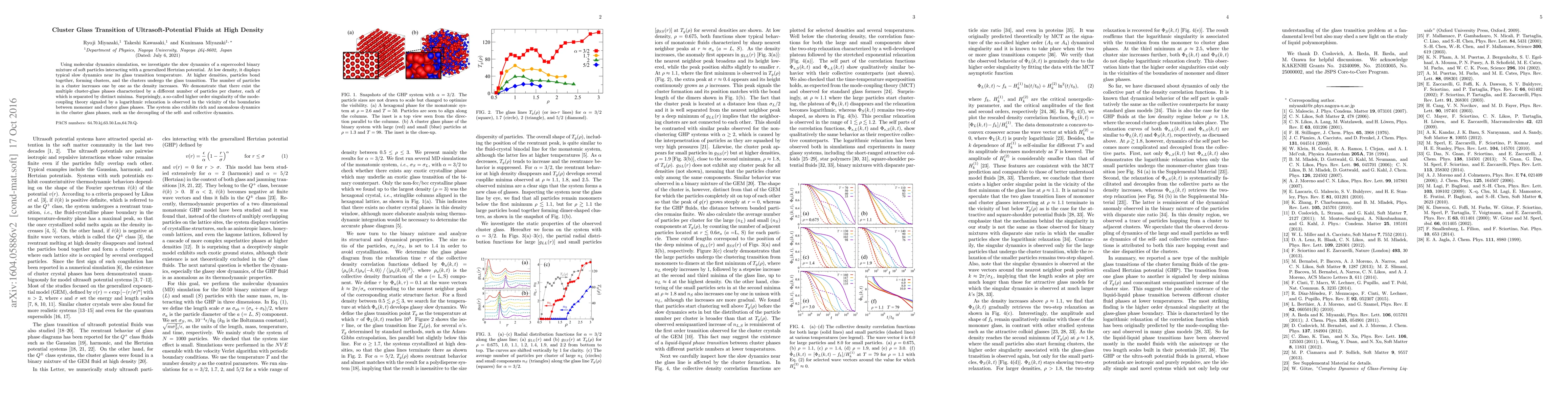 This paper uses molecular dynamics simulations to explore the cluster glass transition in a supercooled binary mixture of ultrasoft particles at high densities, revealing multiple cluster-glass phases and anomalous dynamics, including a logarithmic relaxation near phase boundaries. The study highlights the decoupling of self- and collective dynamics in these phases.