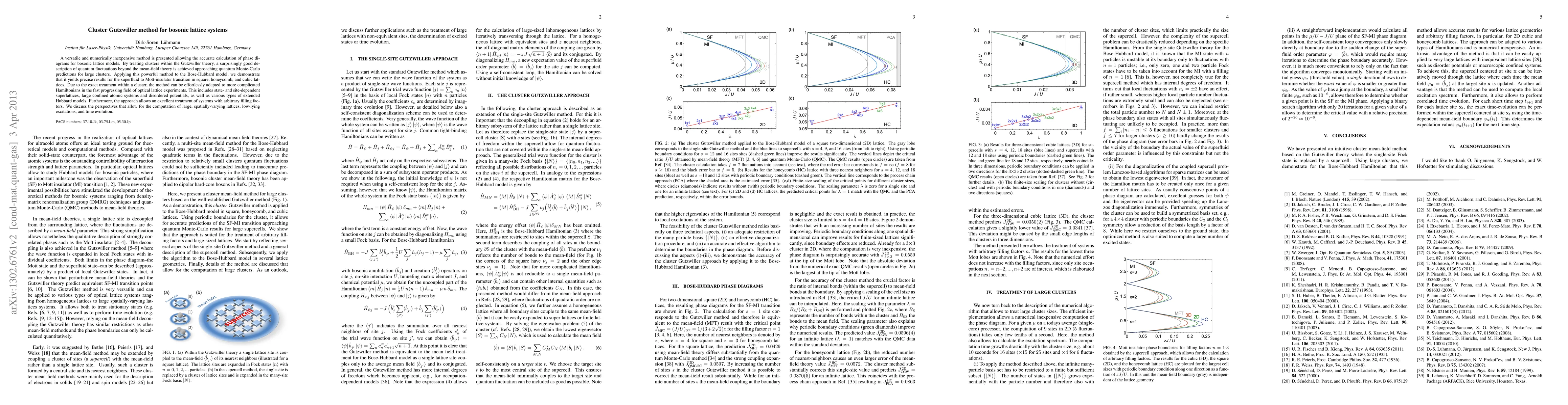 A versatile and numerically inexpensive method is presented allowing the accurate calculation of phase diagrams for bosonic lattice models. By treating clusters within the Gutzwiller theory, a surprisingly good description of quantum fluctuations beyond the mean-field theory is achieved approaching quantum Monte-Carlo predictions for large clusters. Applying this powerful method to the Bose-Hubbard model, we demonstrate that it yields precise results for the superfluid to Mott-insulator transition in square, honeycomb, and cubic lattices. Due to the exact treatment within a cluster, the method can be effortlessly adapted to more complicated Hamiltonians in the fast progressing field of optical lattice experiments. This includes state- and site-dependent superlattices, large confined atomic systems and disordered potentials, as well as various types of extended Hubbard models. Furthermore, the approach allows an excellent treatment of systems with arbitrary filling factors. We discuss the perspectives that allow for the computation of large, spatially-varying lattices, low-lying excitations, and time evolution.