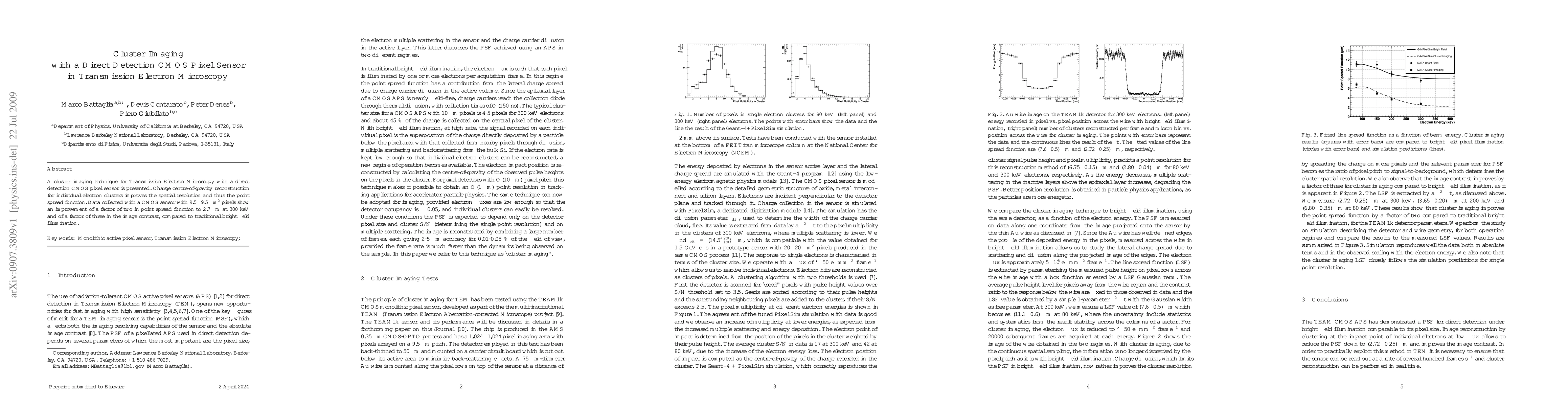 This paper presents a cluster imaging technique using a direct detection CMOS pixel sensor in Transmission Electron Microscopy, achieving a twofold improvement in point spread function resolution and a threefold increase in image contrast compared to traditional methods.