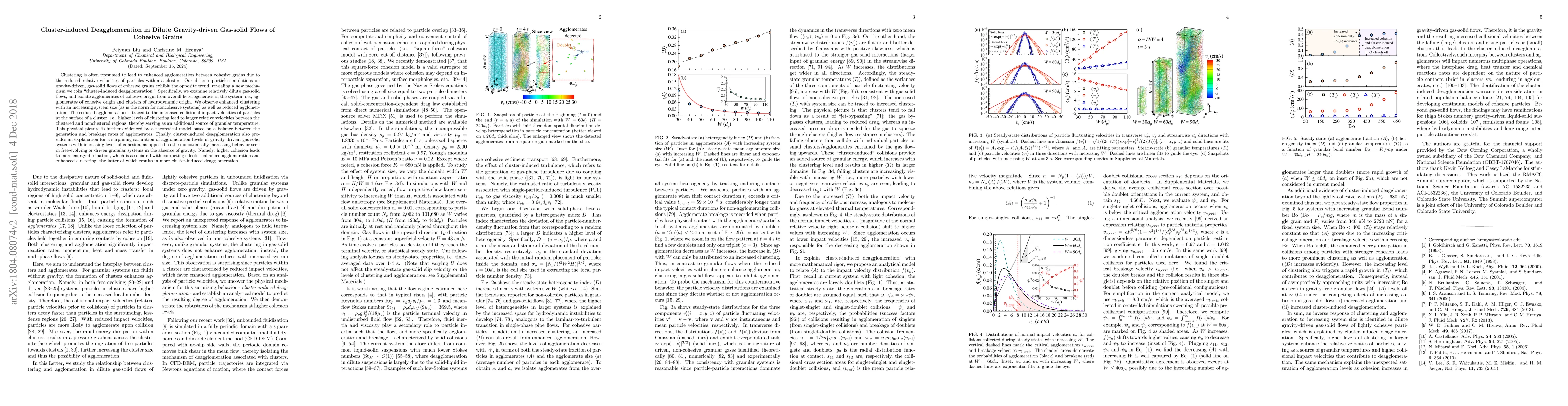 Clustering is often presumed to lead to enhanced agglomeration between cohesive grains due to the reduced relative velocities of particles within a cluster. Our discrete-particle simulations on gravity-driven, gas-solid flows of cohesive grains exhibit the opposite trend, revealing a new mechanism we coin "cluster-induced deagglomeration." Specifically, we examine relatively dilute gas-solid flows and isolate agglomerates of cohesive origin from overall heterogeneities in the system, i.e., agglomerates of cohesive origin and clusters of hydrodynamic origin. We observe enhanced clustering with an increasing system size (as is the norm for noncohesive systems) as well as reduced agglomeration. The reduced agglomeration is traced to the increased collisional impact velocities of particles at the surface of a cluster; i.e., higher levels of clustering lead to larger relative velocities between the clustered and nonclustered regions, thereby serving as an additional source of granular temperature. This physical picture is further evidenced by a theoretical model based on a balance between the generation and breakage rates of agglomerates. Finally, cluster-induced deagglomeration also provides an explanation for a surprising saturation of agglomeration levels in gravity-driven, gas-solid systems with increasing levels of cohesion, as opposed to the monotonically increasing behavior seen in free-evolving or driven granular systems in the absence of gravity. Namely, higher cohesion leads to more energy dissipation, which is associated with competing effects: enhanced agglomeration and enhanced clustering, the latter of which results in more cluster-induced deagglomeration.