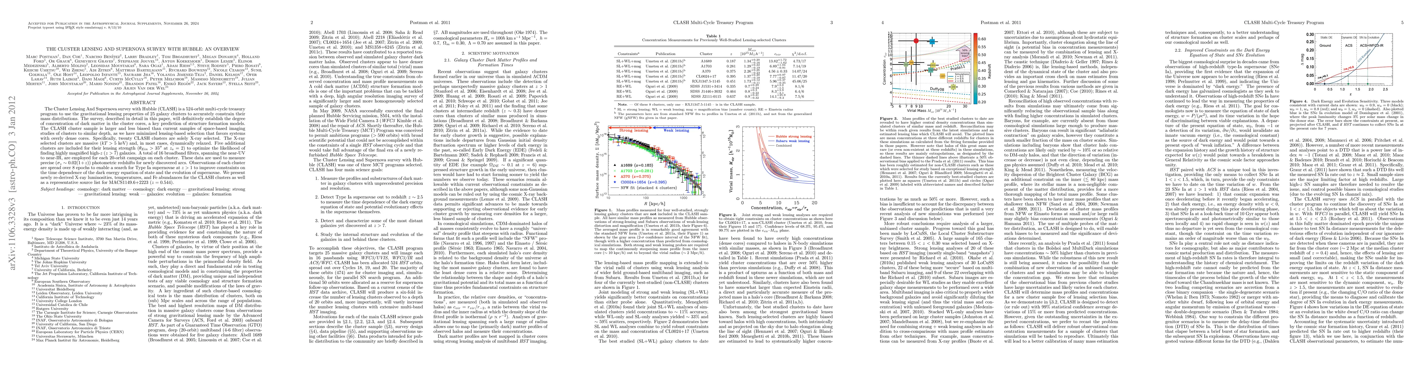 The CLASH survey uses gravitational lensing of 25 galaxy clusters to map dark matter distributions and determine the concentration of dark matter in cluster cores, providing high-resolution dark matter maps and potential candidates for high-redshift galaxies. The study also aims to observe Type Ia supernovae to refine the understanding of dark energy and its evolution.
