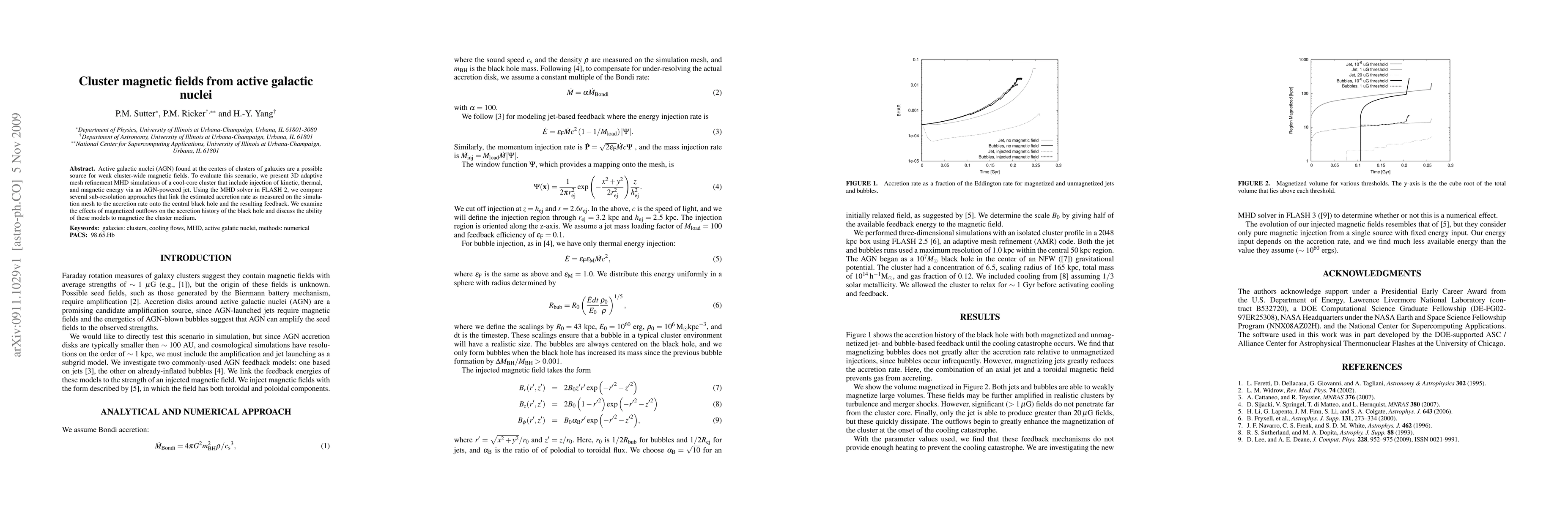 Active galactic nuclei (AGN) found at the centers of clusters of galaxies are a possible source for weak cluster-wide magnetic fields. To evaluate this scenario, we present 3D adaptive mesh refinement MHD simulations of a cool-core cluster that include injection of kinetic, thermal, and magnetic energy via an AGN-powered jet. Using the MHD solver in FLASH 2, we compare several sub-resolution approaches that link the estimated accretion rate as measured on the simulation mesh to the accretion rate onto the central black hole and the resulting feedback. We examine the effects of magnetized outflows on the accretion history of the black hole and discuss the ability of these models to magnetize the cluster medium.