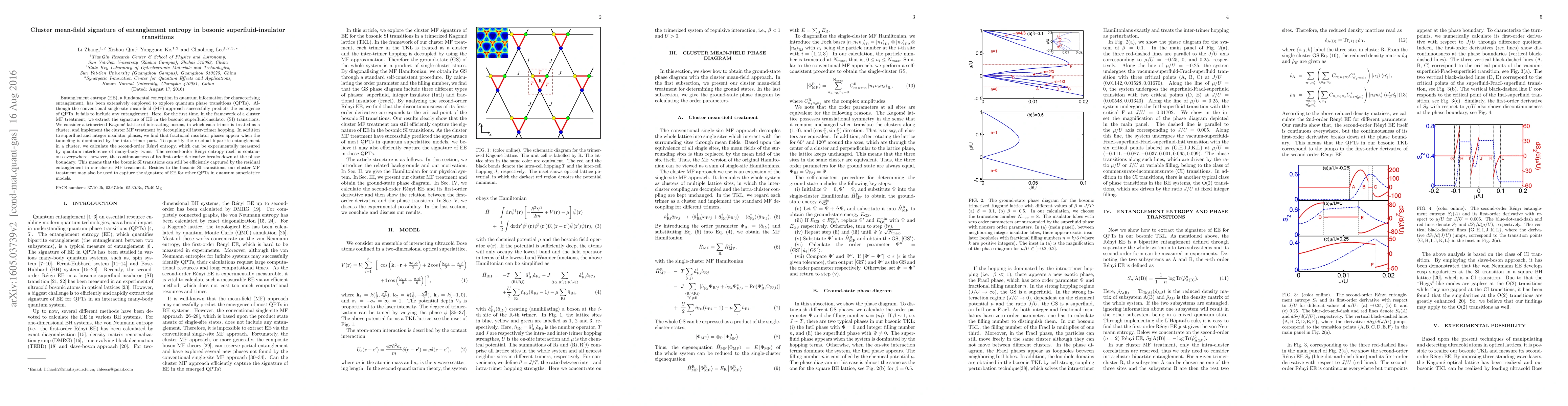 Entanglement entropy (EE), a fundamental conception in quantum information for characterizing entanglement, has been extensively employed to explore quantum phase transitions (QPTs). Although the conventional single-site mean-field (MF) approach successfully predicts the emergence of QPTs, it fails to include any entanglement. Here, for the first time, in the framework of a cluster MF treatment, we extract the signature of EE in the bosonic superfluid-insulator transitions. We consider a trimerized Kagome lattice of interacting bosons, in which each trimer is treated as a cluster, and implement the cluster MF treatment by decoupling all inter-trimer hopping. In addition to superfluid and integer insulator phases, we find that fractional insulator phases appear when the tunneling is dominated by the intra-trimer part. To quantify the residual bipartite entanglement in a cluster, we calculate the second-order Renyi entropy, which can be experimentally measured by quantum interference of many-body twins. The second-order Renyi entropy itself is continuous everywhere, however, the continuousness of its first-order derivative breaks down at the phase boundary. This means that the bosonic superfluid-insulator transitions can still be efficiently captured by the residual entanglement in our cluster MF treatment. Besides to the bosonic superfluid-insulator transitions, our cluster MF treatment may also be used to capture the signature of EE for other QPTs in quantum superlattice models.