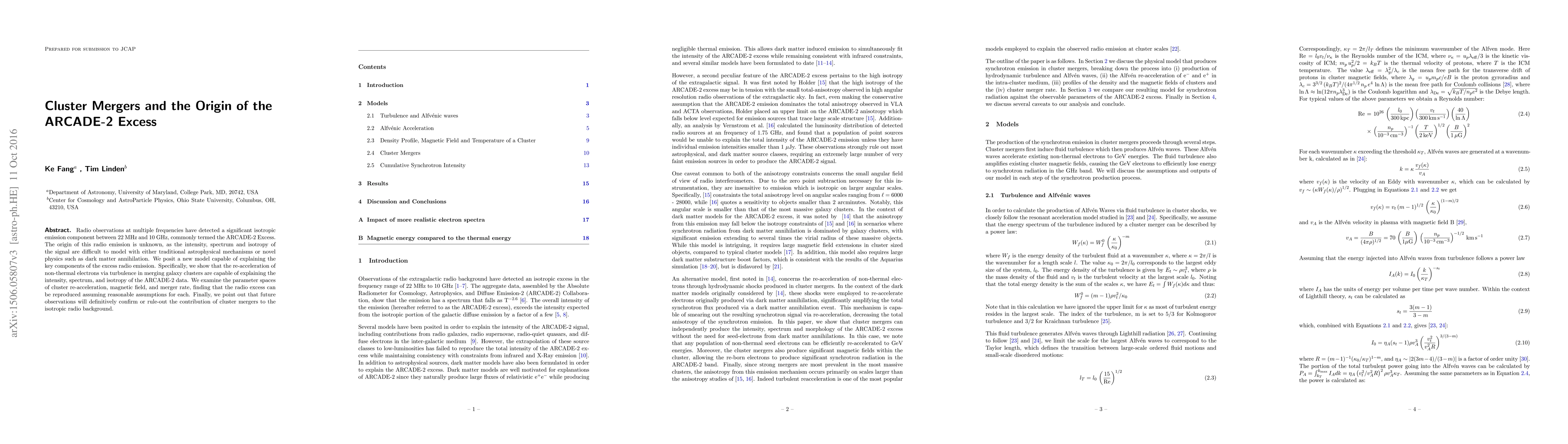 Radio observations at multiple frequencies have detected a significant isotropic emission component between 22~MHz and 10~GHz, commonly termed the ARCADE-2 Excess. The origin of this radio emission is unknown, as the intensity, spectrum and isotropy of the signal are difficult to model with either traditional astrophysical mechanisms or novel physics such as dark matter annihilation. We posit a new model capable of explaining the key components of the excess radio emission. Specifically, we show that the re-acceleration of non-thermal electrons via turbulence in merging galaxy clusters are capable of explaining the intensity, spectrum, and isotropy of the ARCADE-2 data. We examine the parameter spaces of cluster re-acceleration, magnetic field, and merger rate, finding that the radio excess can be reproduced assuming reasonable assumptions for each. Finally, we point out that future observations will definitively confirm or rule-out the contribution of cluster mergers to the isotropic radio background.