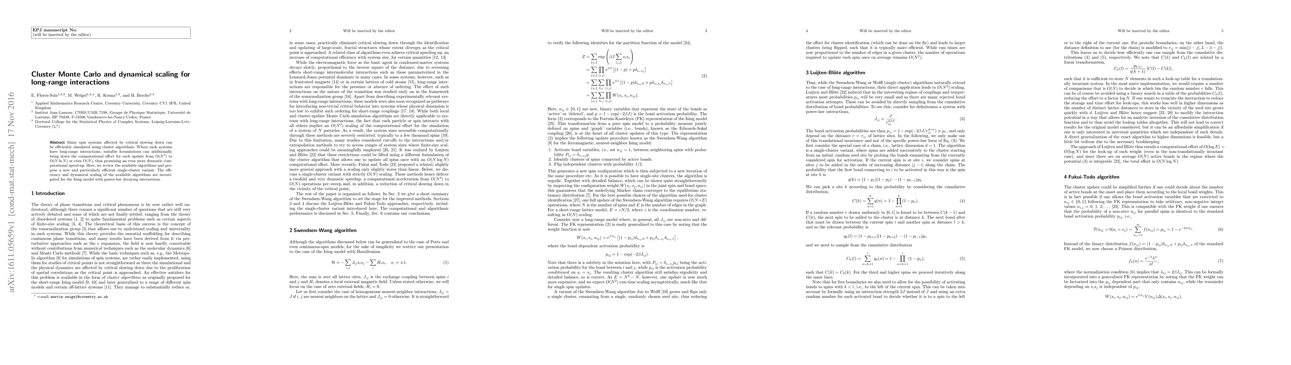 This paper reviews cluster Monte Carlo algorithms for simulating spin systems with long-range interactions, proposing a new efficient single-cluster variant. It investigates the efficiency and dynamical scaling of these algorithms for the Ising model with power-law decaying interactions, achieving computational speed-ups from O($N^2$) to O($N\ln N$) or O($N$).