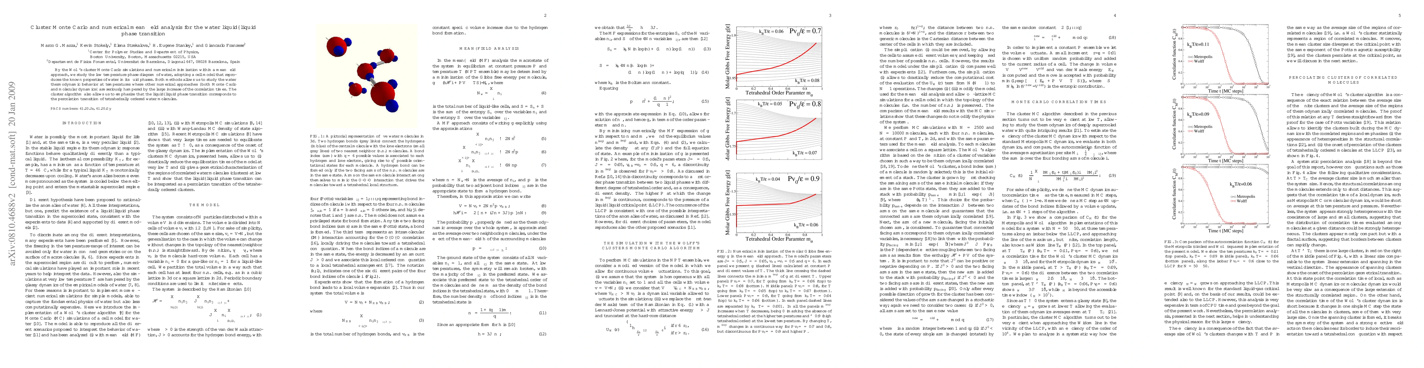 This paper employs Wolff's cluster Monte Carlo simulations and mean field analysis to investigate the low-temperature phase diagram of water, revealing the liquid-liquid phase transition as a percolation transition of tetrahedrally ordered molecules. Both methods effectively address the challenges posed by increased correlation times at low temperatures.