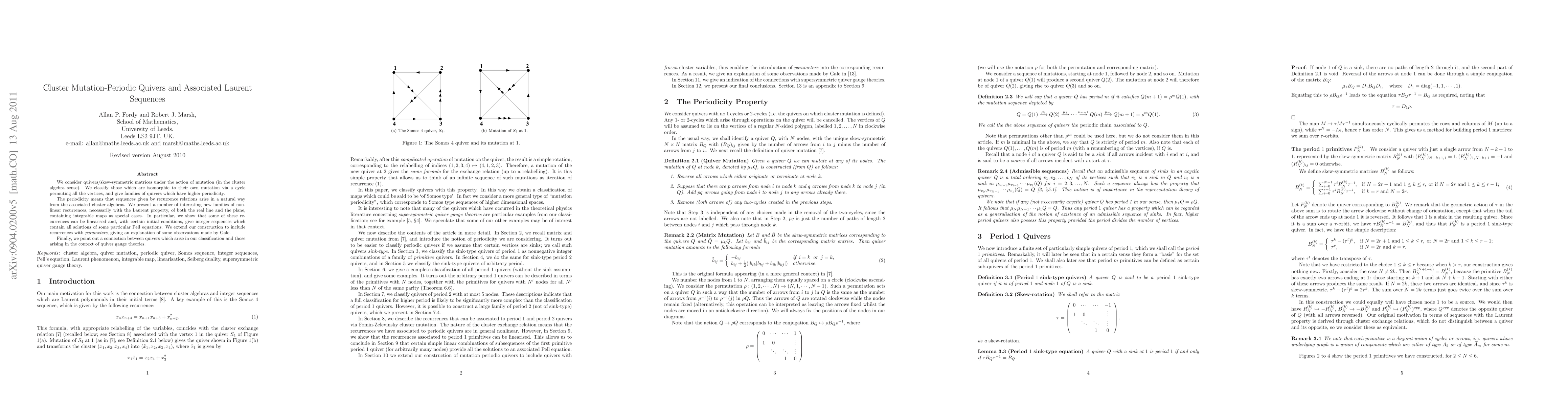 This paper classifies quivers that remain isomorphic to their mutations under periodic vertex permutations, revealing families of periodic quivers and associated Laurent sequences. It introduces new non-linear recurrence relations with the Laurent property, some of which can be linearized to solve Pell equations, and connects these findings to quiver gauge theories.