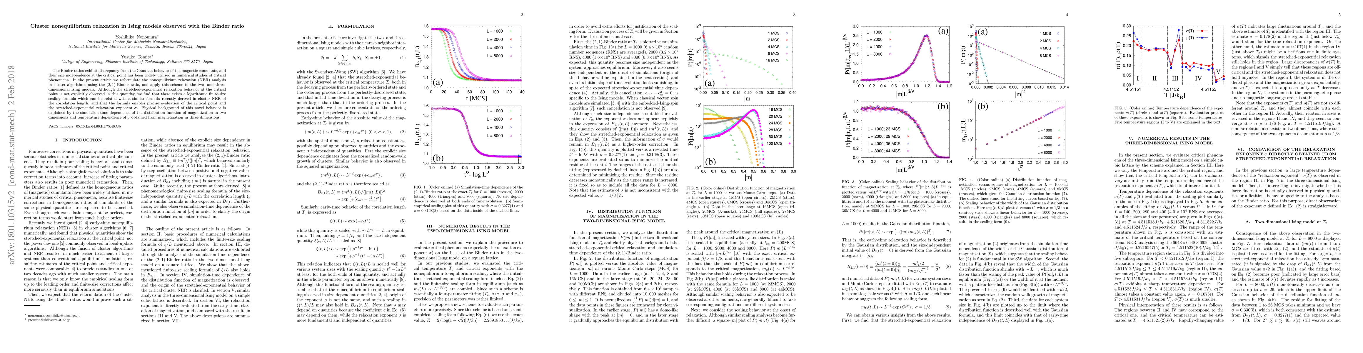 This paper reformulates nonequilibrium relaxation analysis in cluster algorithms using the $(2,1)$-Binder ratio for Ising models, revealing a logarithmic finite-size scaling formula that aids precise evaluation of critical points and stretched-exponential relaxation exponents. The study explains the observed behavior through simulation-time dependence of magnetization distribution in 2D and temperature dependence in 3D.