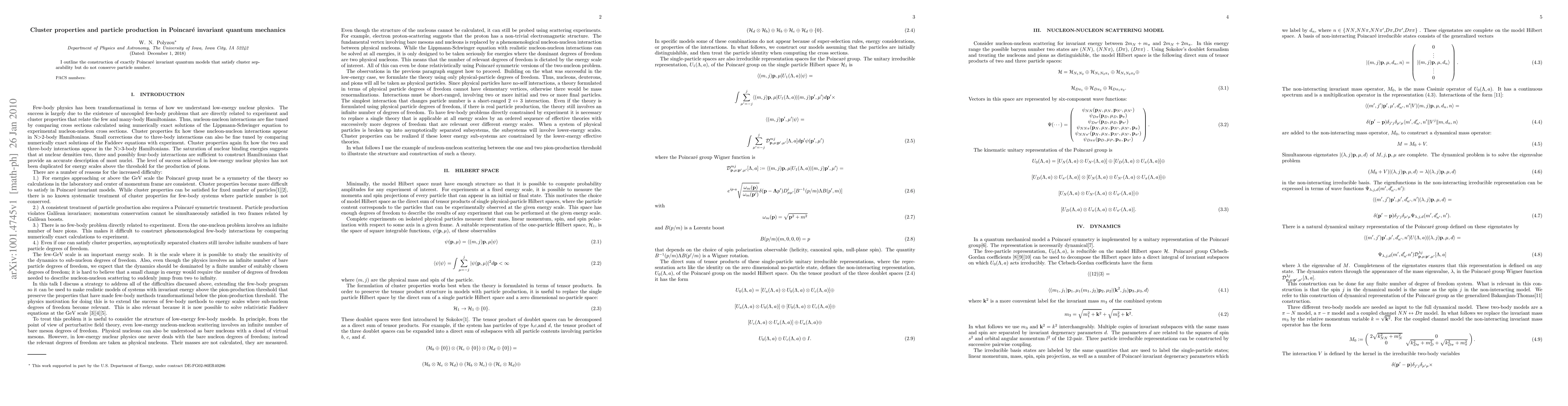 I outline the construction of exactly Poincar\'e invariant quantum models that satisfy cluster separability but do not conserve particle number.